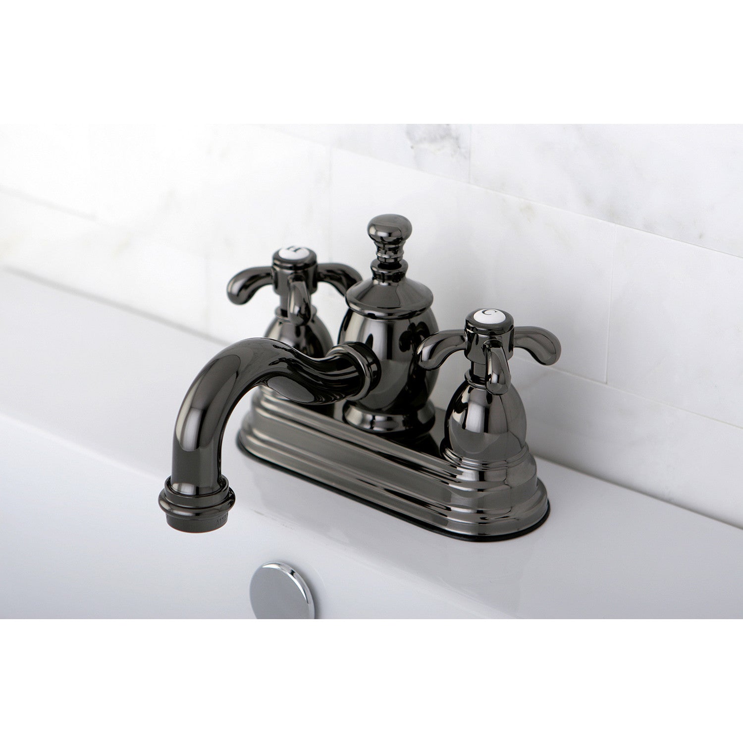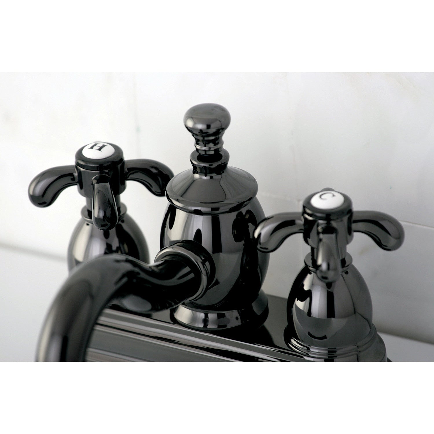 Water Onyx NS7100TX Two-Handle 3-Hole Deck Mount 4" Centerset Bathroom Faucet with Brass Pop-Up, Black Stainless Steel