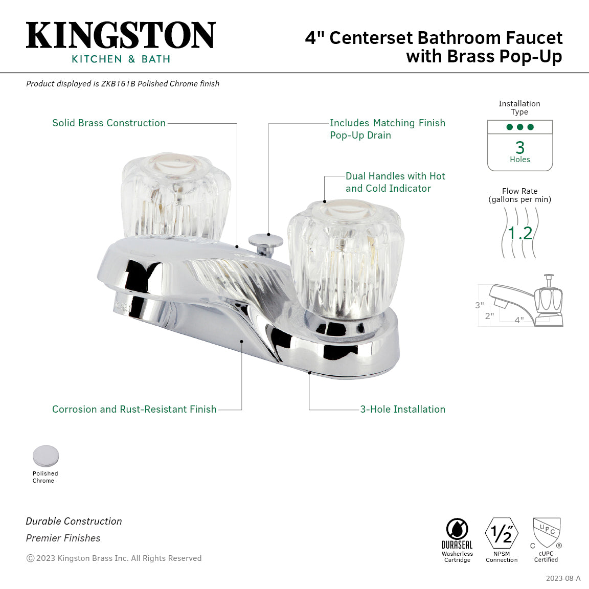 ZKB161B 4-Inch Centerset Bathroom Faucet with Brass Pop-Up, Polished Chrome