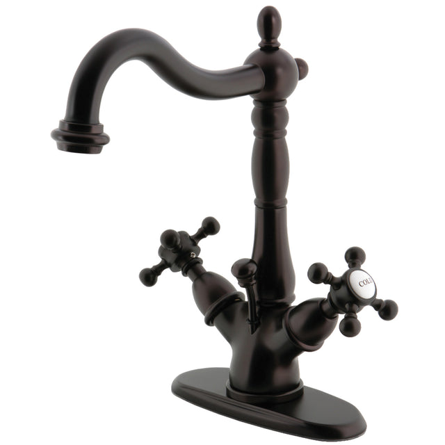 Kingston Brass KS1435BX Vintage Two-Handle Bathroom Faucet with Brass Pop-Up and Cover Plate, Oil Rubbed Bronze