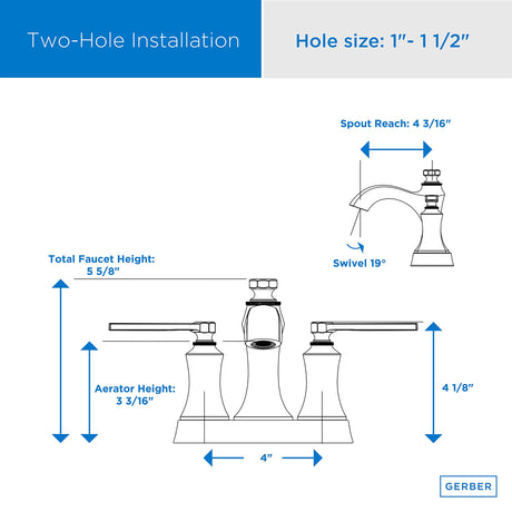 Regular price $16782UnavailableGerber G004341166 Chrome Classics Two Metal Handle Centerset Lavatory Faucet ...