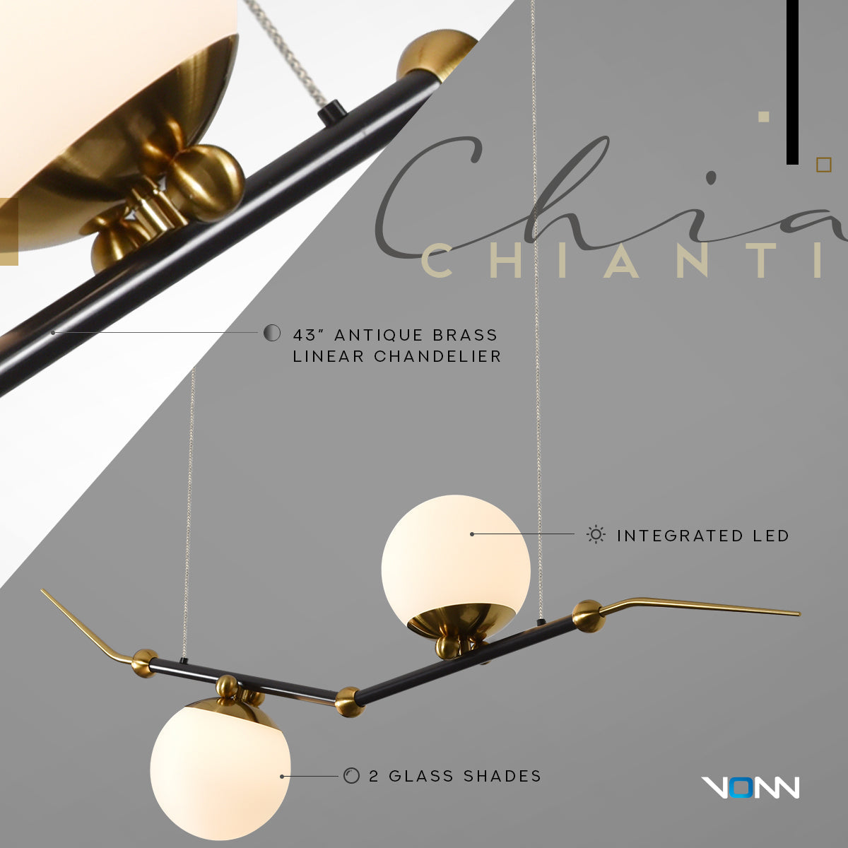 VONN Artisan Chianti VAC3122AB 43" Integrated LED ETL Certified Height Adjustable Pendant, Chandelier, Antique Brass