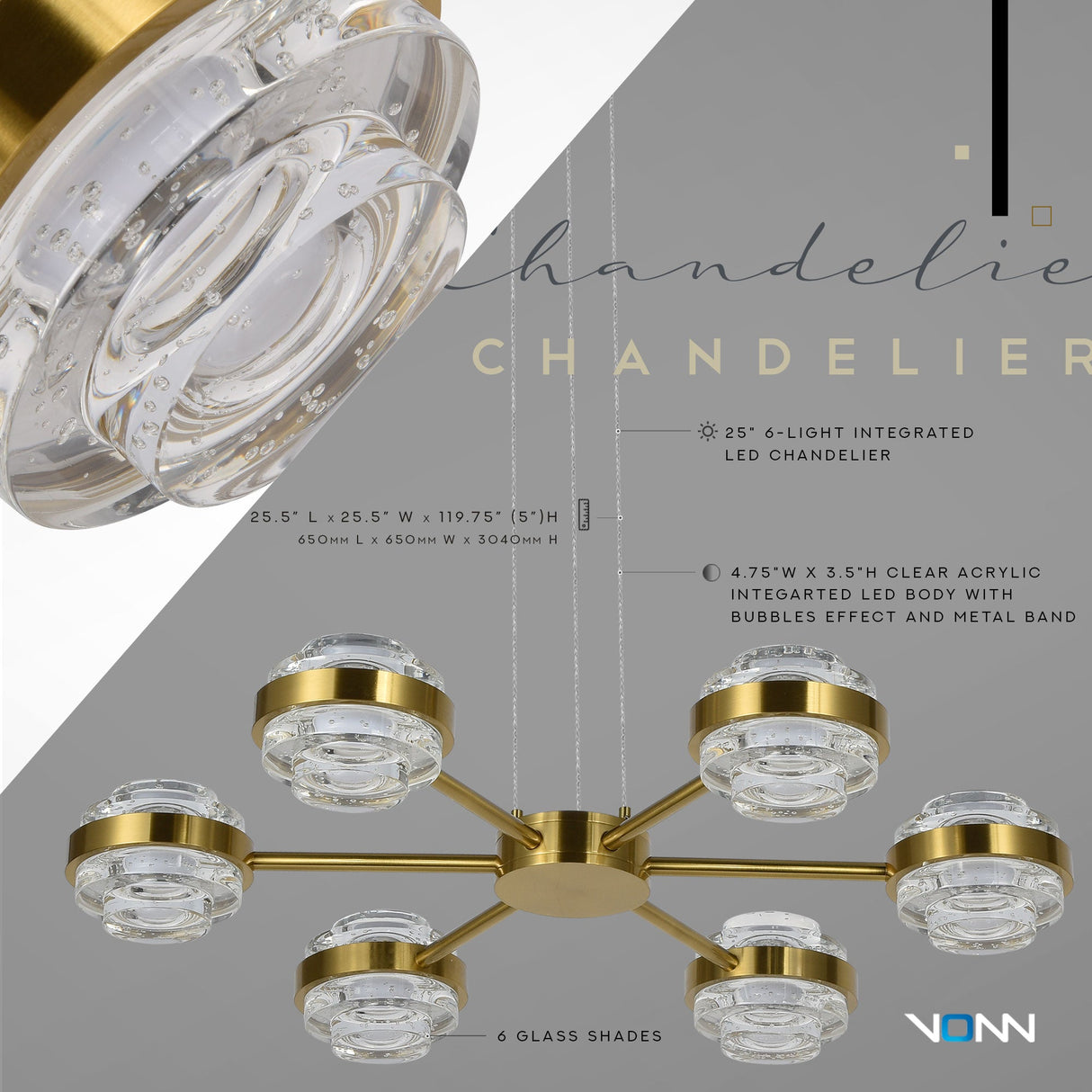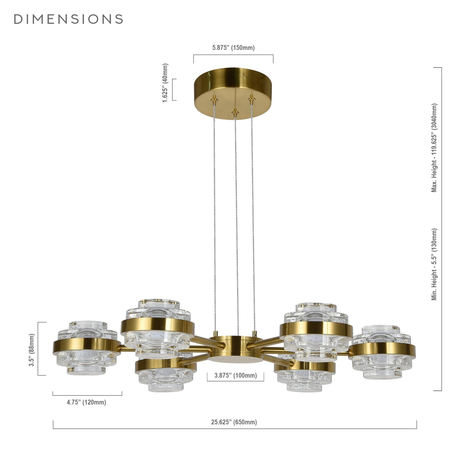 VONN Artisan Milano VAP2336AB 25" Integrated LED ETL Certified Pendant, Height Adjustable Chandelier, Antique Brass