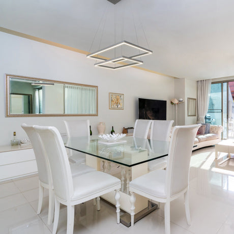 Very low stock (1 unit)Vonn VMC32410AL 55" LED Chandelier, Multi-Ring Adjustable Hanging Light,...