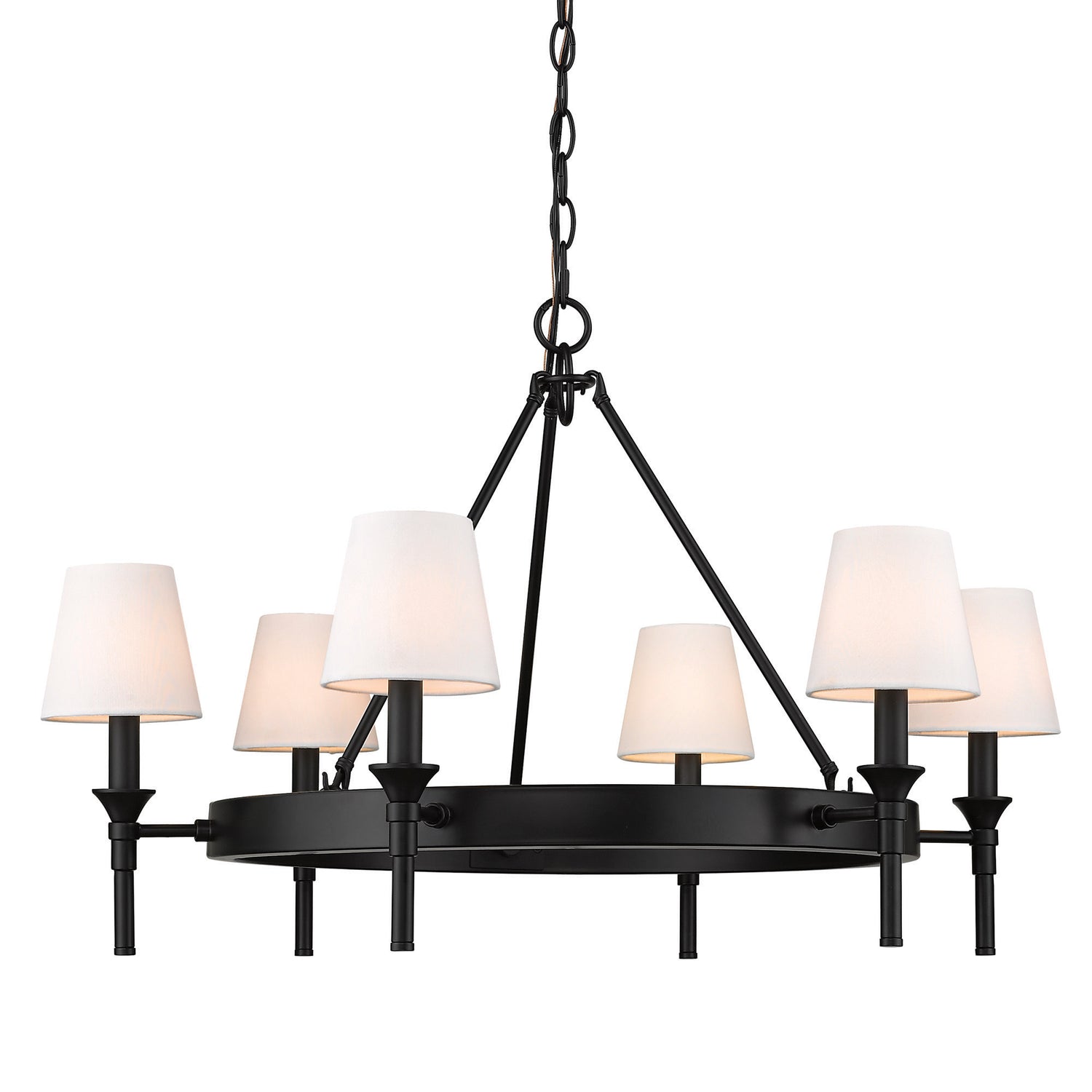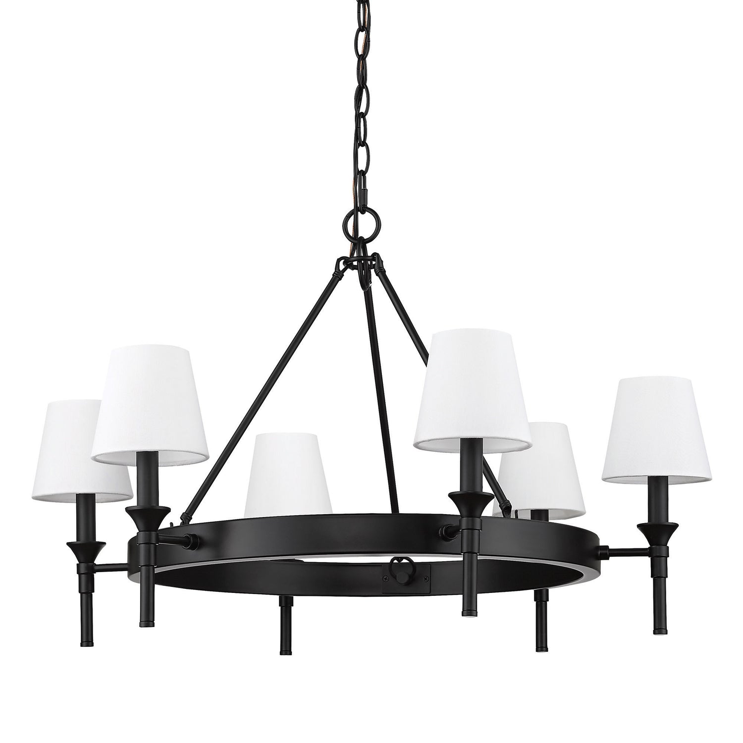 Edinburgh 6 Light Chandelier in Matte Black with Modern White Shade