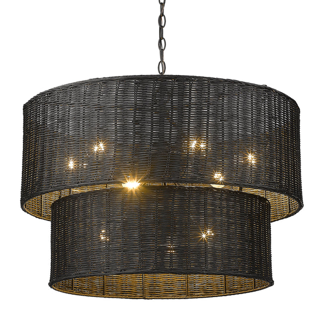 Erma 9 Light Chandelier in Matte Black and Black Wicker
