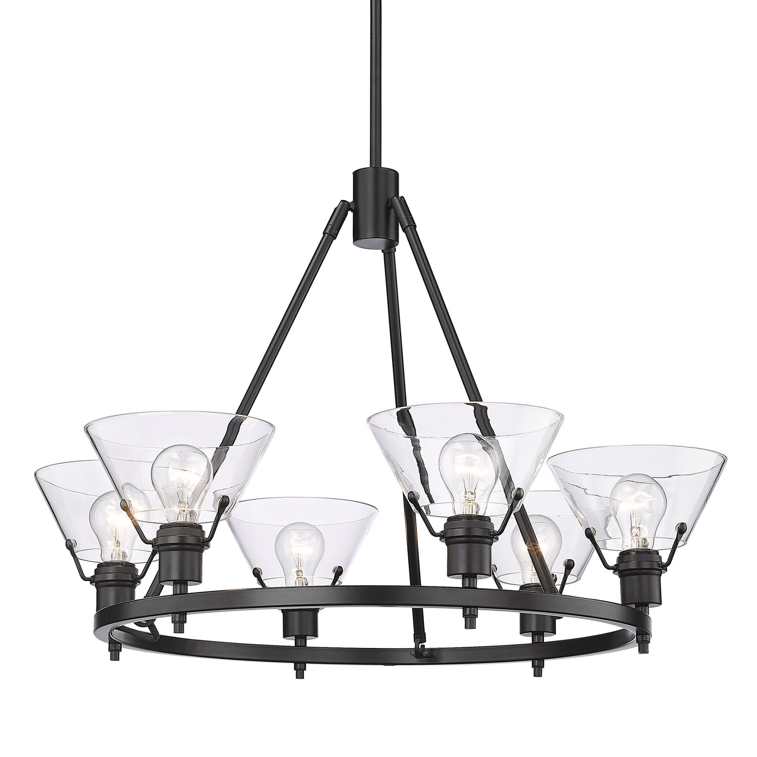 Orwell BLK 6 Light Chandelier in Matte Black with Clear Glass Shade