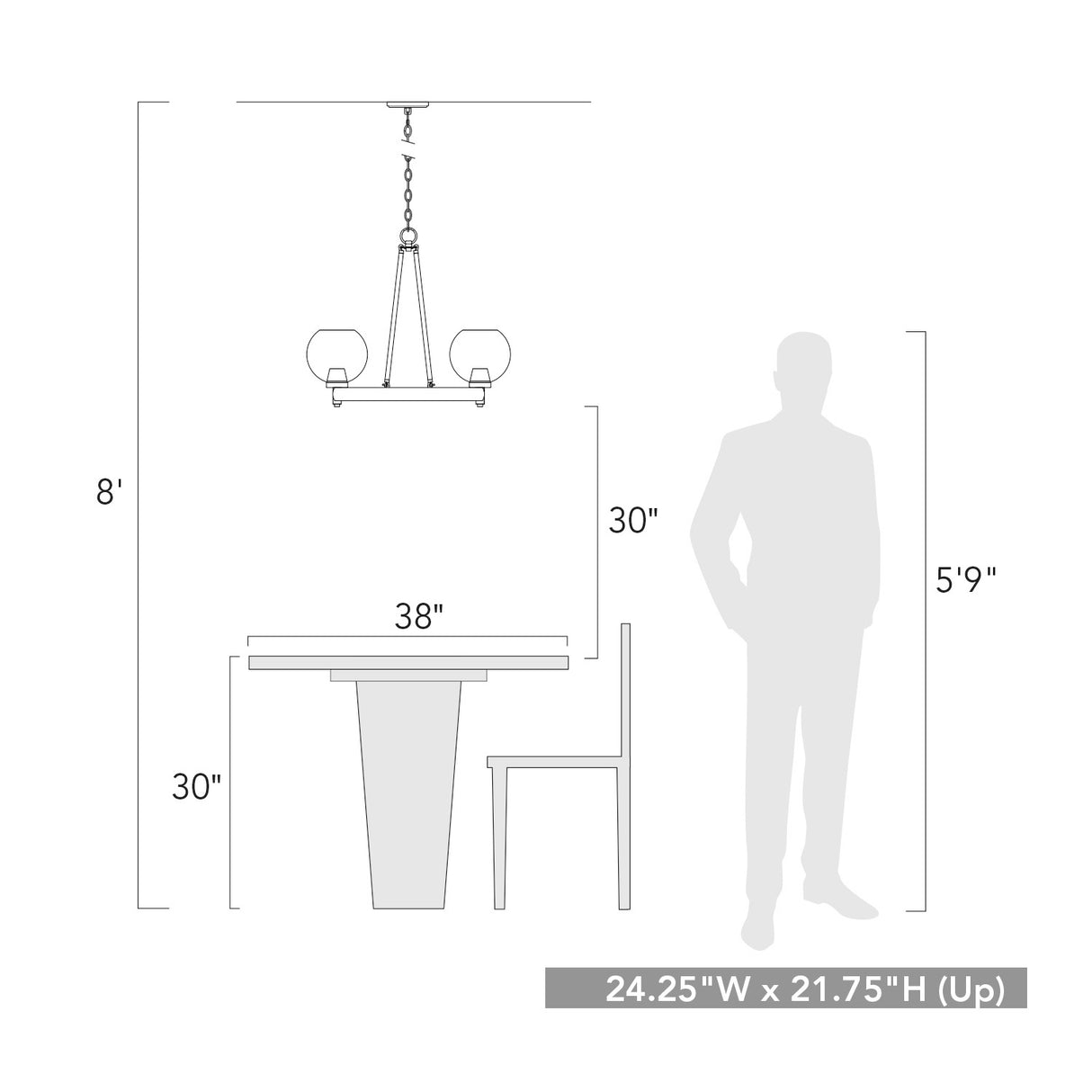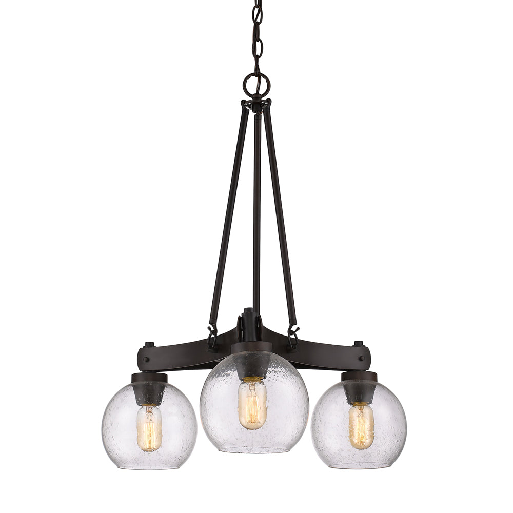 Galveston 3-Light Chandelier in Rubbed Bronze with Seeded Glass