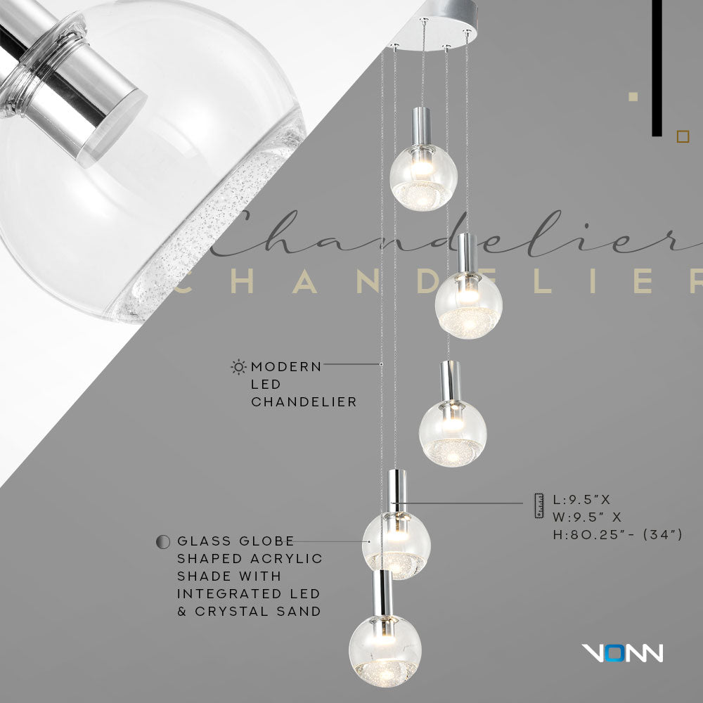 VONN Artisan Sienna VAC3185CH 5-Light ETL Certified Integrated LED Pendant, Height Adjustable Chandelier, Chrome