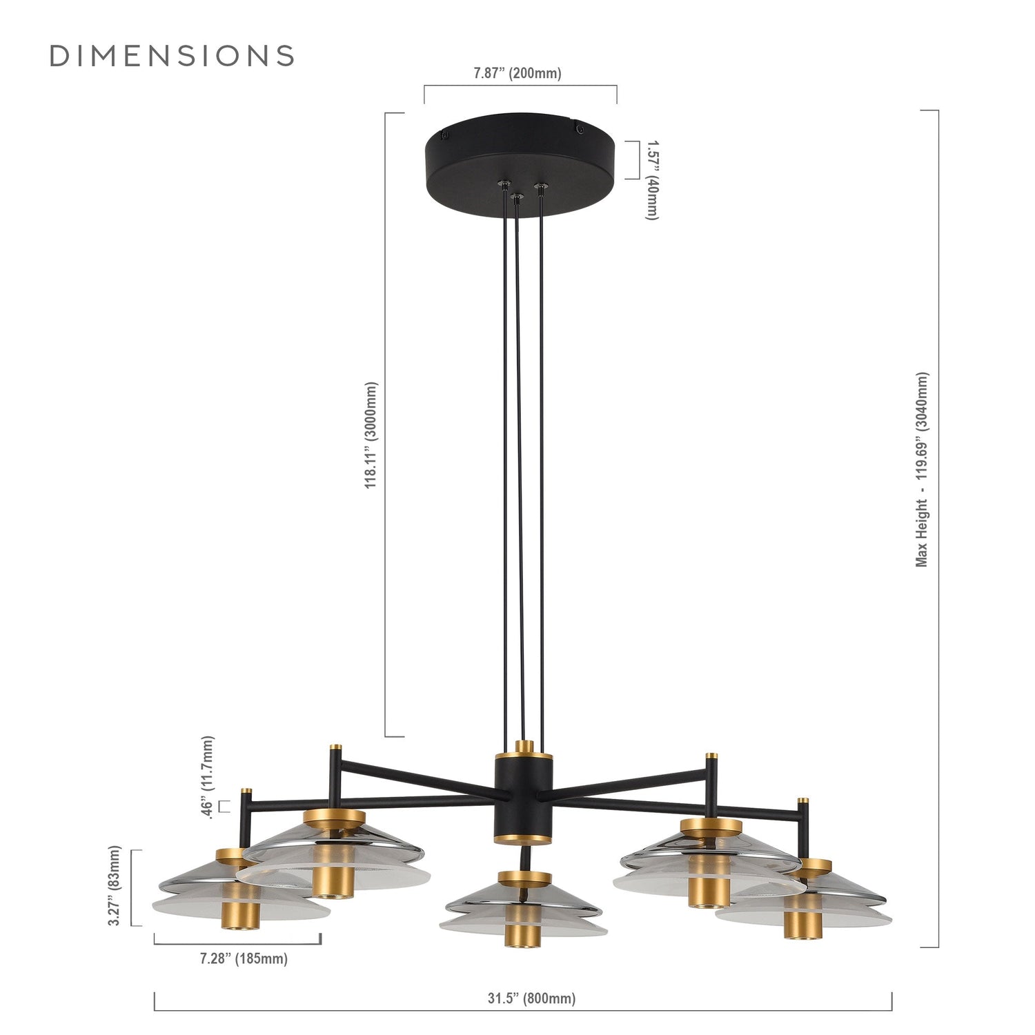 VONN Artisan Verona VAC3315BL 31" Integrated LED ETL Certified Pendant, Height Adjustable Chandelier, Black