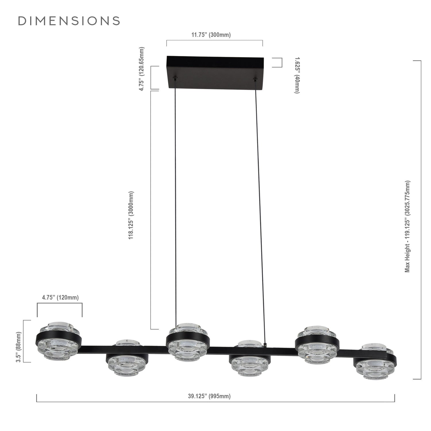 VONN Artisan Milano VAC3LN336BL 39" Integrated LED ETL Certified Pendant, Height Adjustable Chandelier, Black