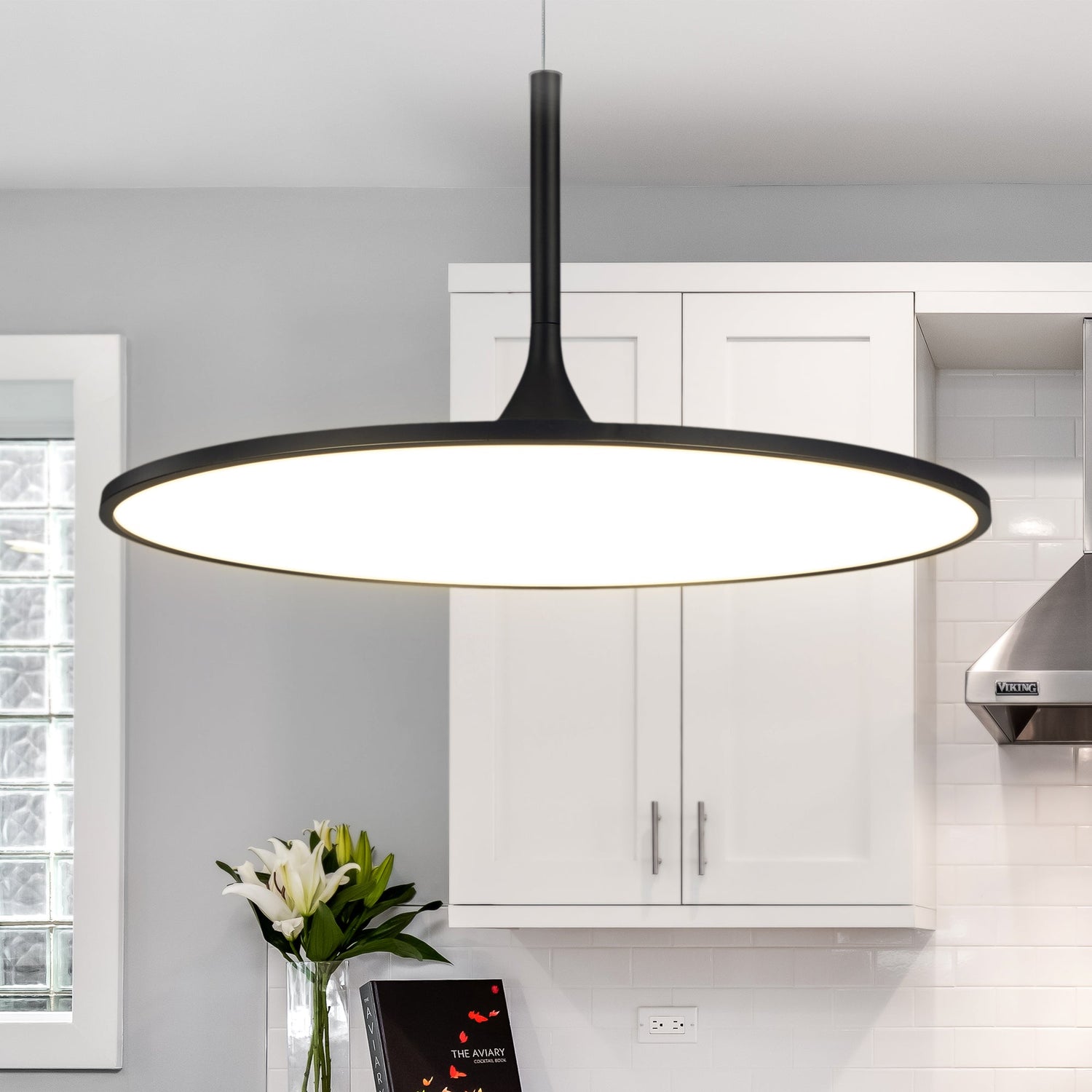 VONN Salm VMC31820BL 24" Integrated LED ETL Certified Pendant, Height Adjustable Disc Chandelier in Black