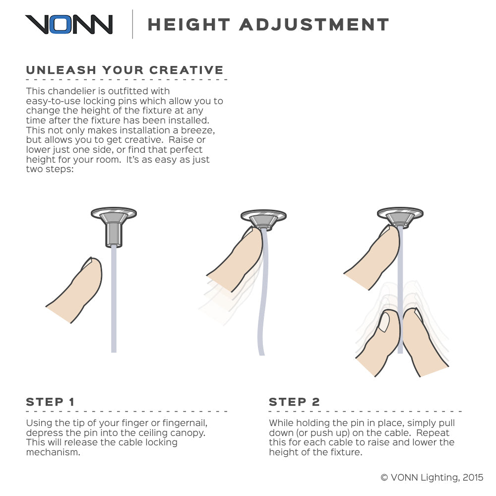 VONN Sirius VMC33440BL 46" ETL Certified Integrated LED Pendant, Height Adjustable Chandelier in Black