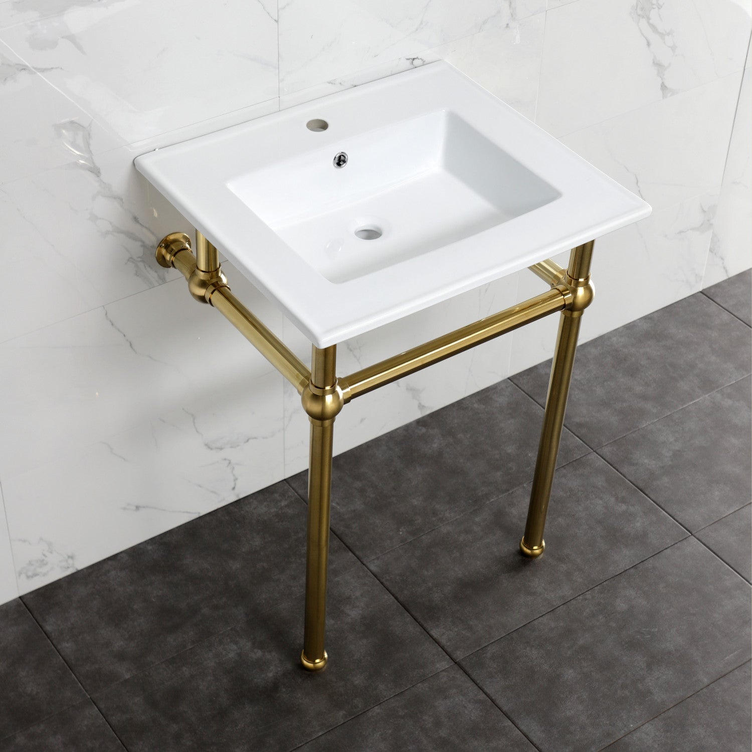 Fauceture KVBH252277 25-Inch Console Sink with Brass Legs (Single Faucet Hole), White/Brushed Brass