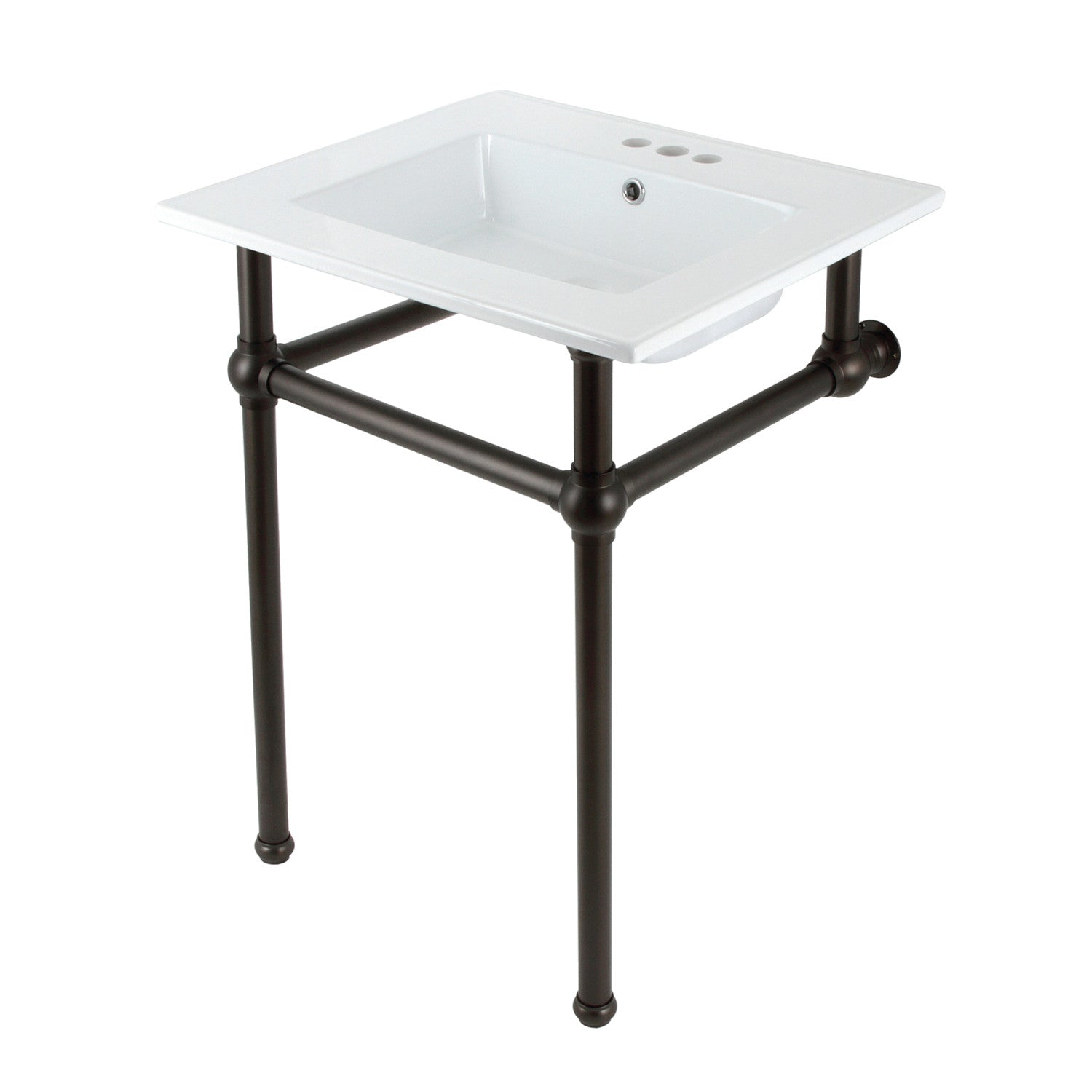 Fauceture KVBH25227W4B5 25-Inch Console Sink with Brass Legs (4-Inch, 3 Hole), White/Oil Rubbed Bronze
