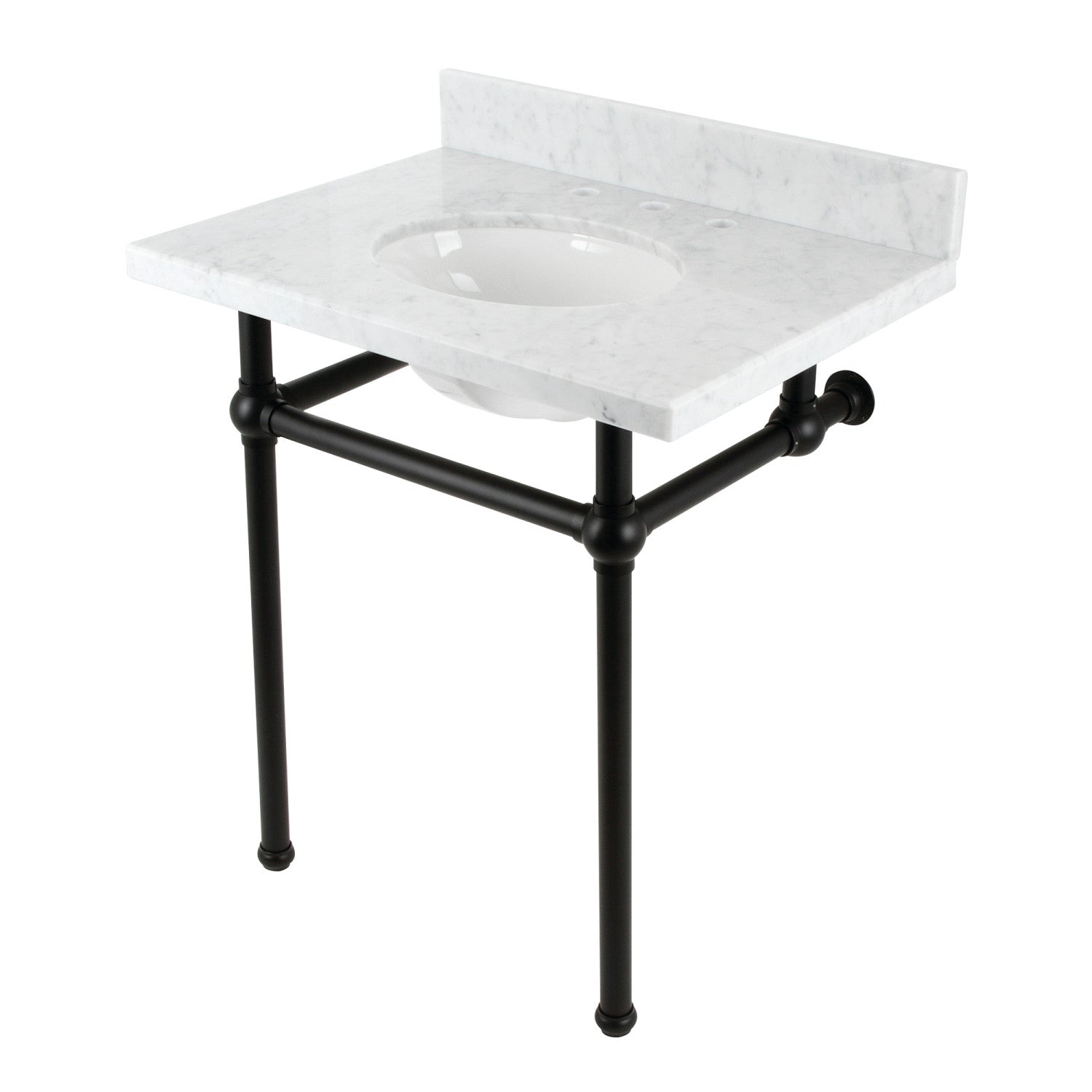 Fauceture KVBH3022M80 30-Inch Console Sink with Brass Legs (8-Inch, 3 Hole), Marble White/Matte Black