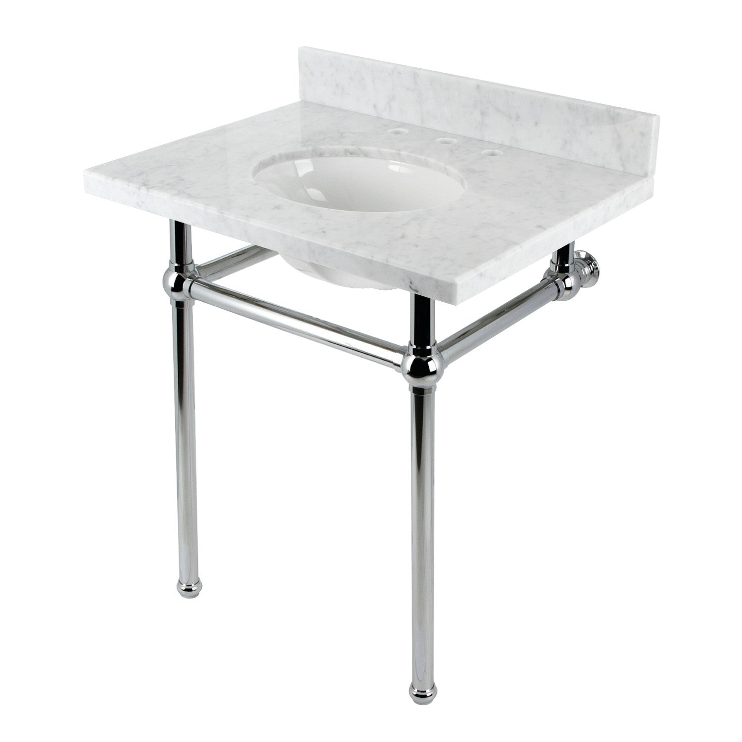 Fauceture KVBH3022M81 30-Inch Console Sink with Brass Legs (8-Inch, 3 Hole), Marble White/Polished Chrome