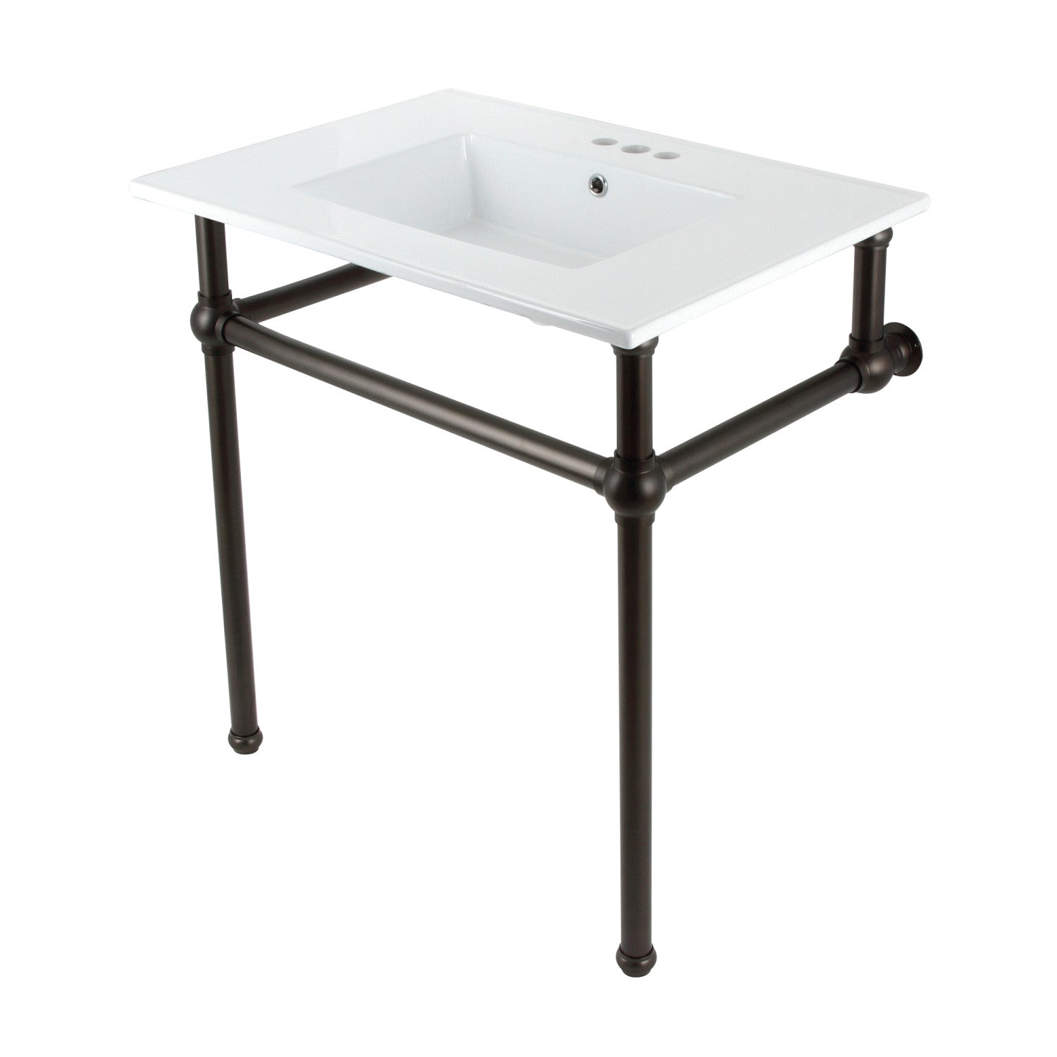 Fauceture KVBH31227W4B5 31-Inch Console Sink with Brass Legs (8-Inch, 3 Hole), White/Oil Rubbed Bronze