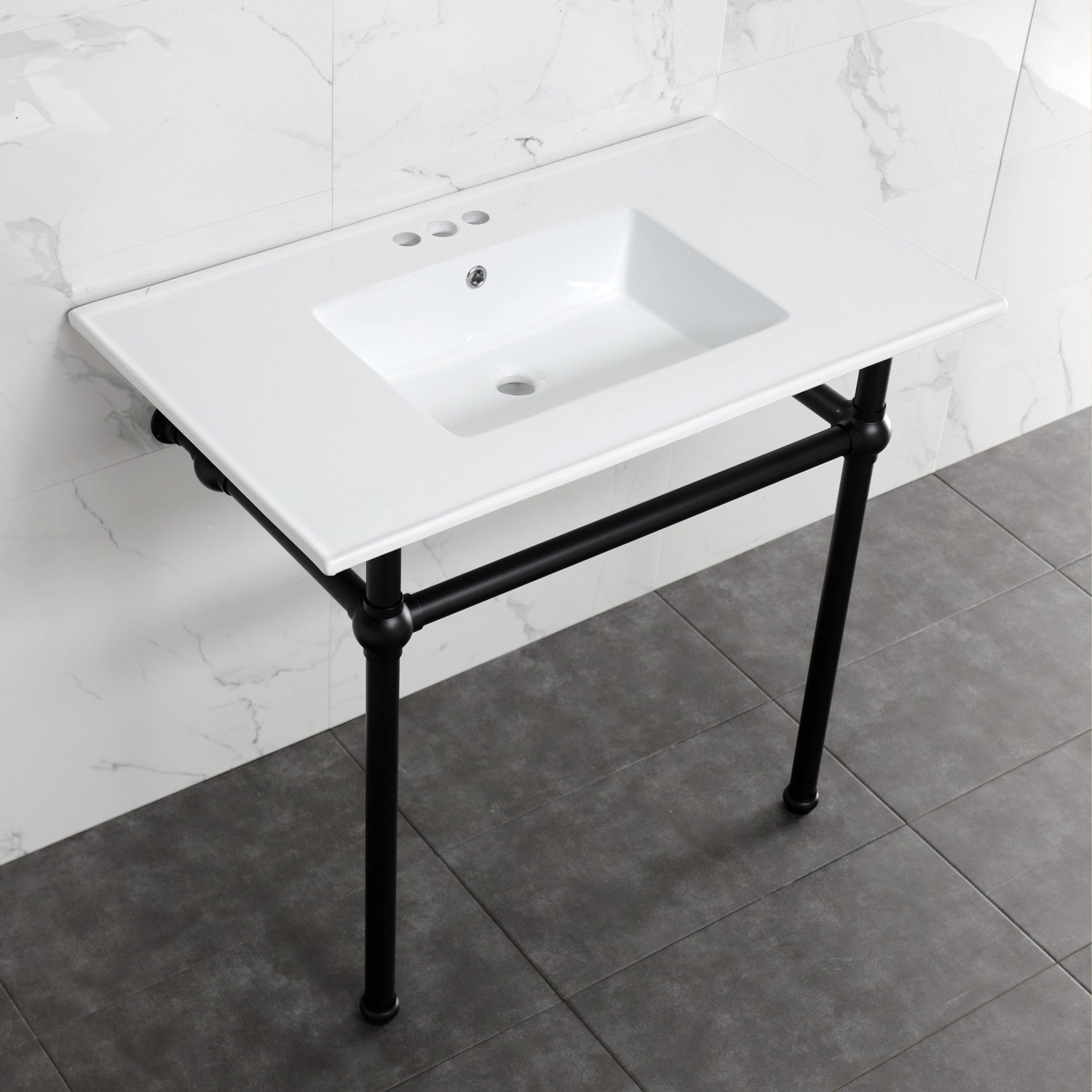 Fauceture KVBH37227W4MB 37-Inch Console Sink with Brass Legs (4-Inch, 3 Hole), White/Matte Black