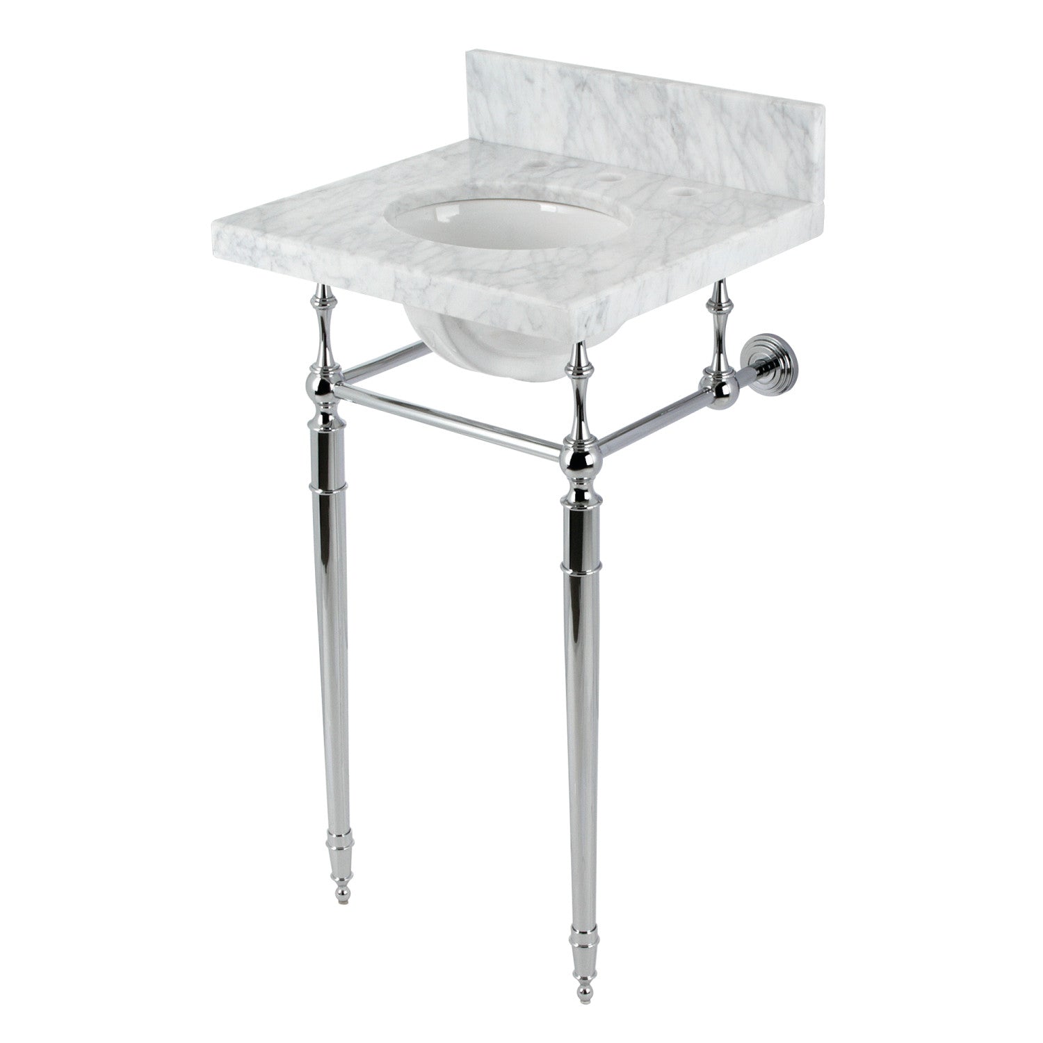 Fauceture KVPB1917M381ST 19-Inch Carrara Marble Console Sink with Brass Legs (8" Faucet Drillings), Marble White/Polished Chrome