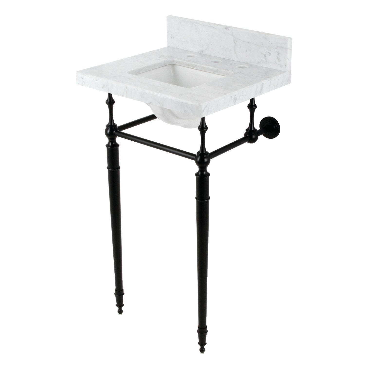 Fauceture KVPB1917M8SQ0 19-Inch Carrara Marble Console Sink with Brass Legs (8" Faucet Drillings), Marble White/Matte Black
