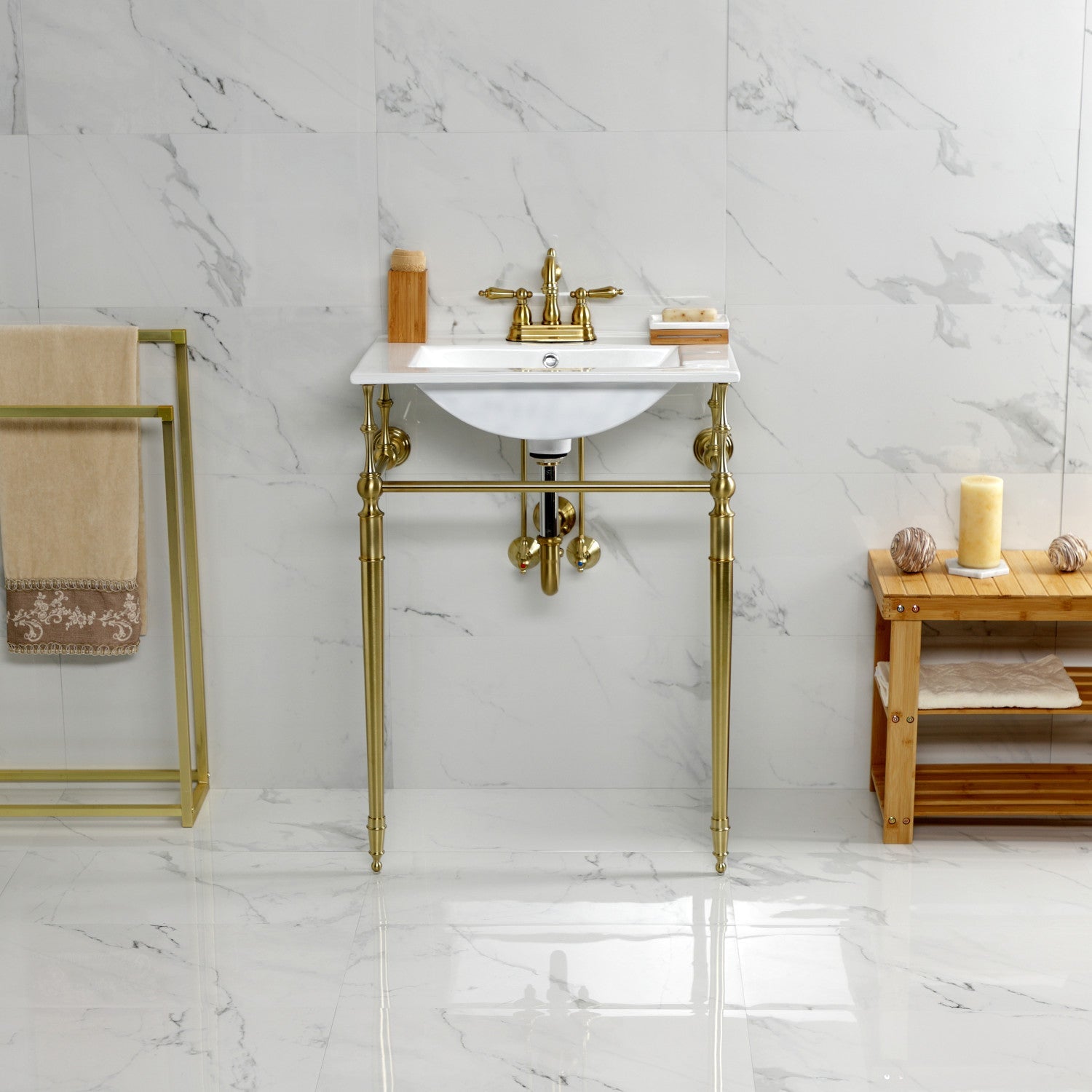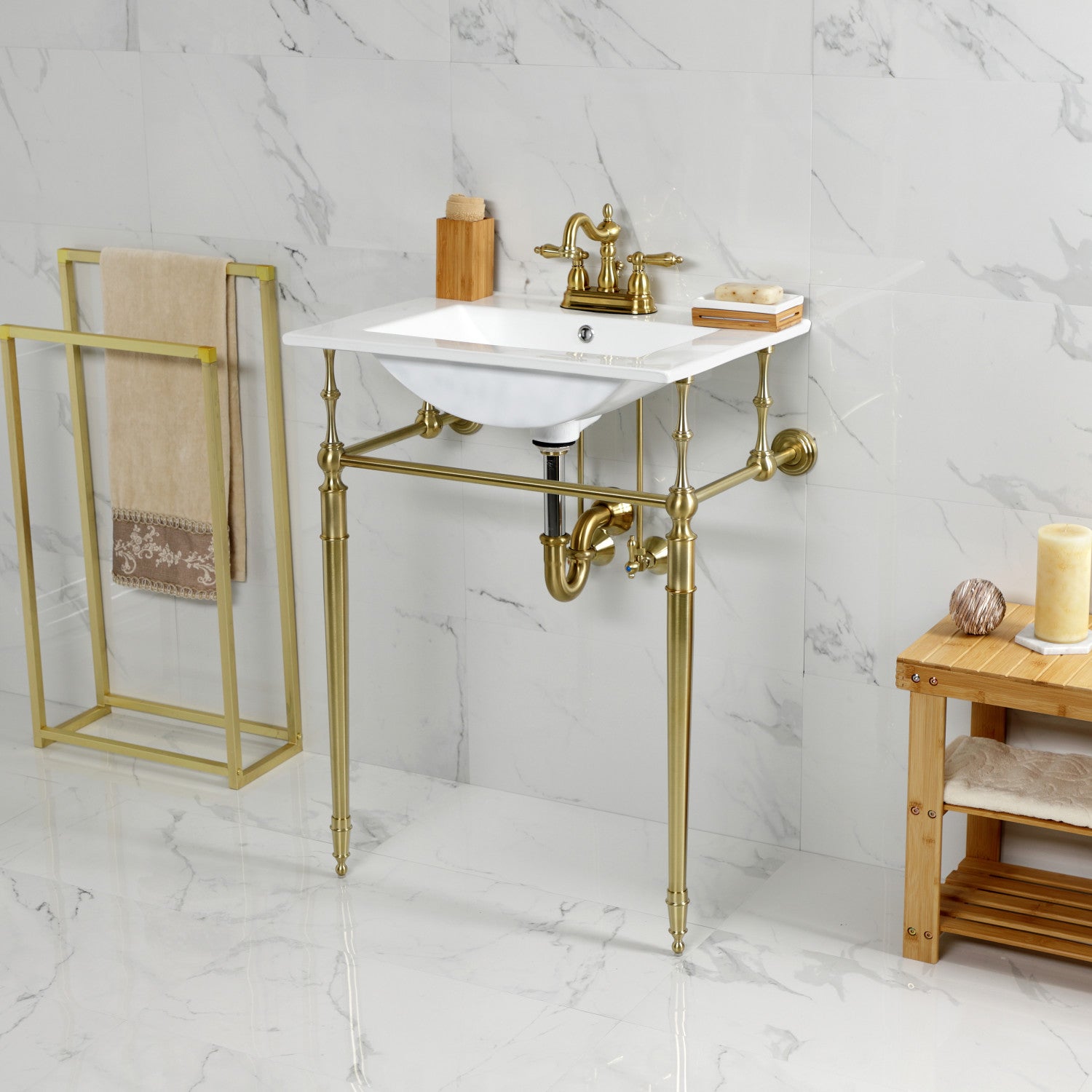 Edwardian KVPB24187W4BB 24-Inch Console Sink with Brass Legs (4-Inch, 3 Hole), White/Brushed Brass