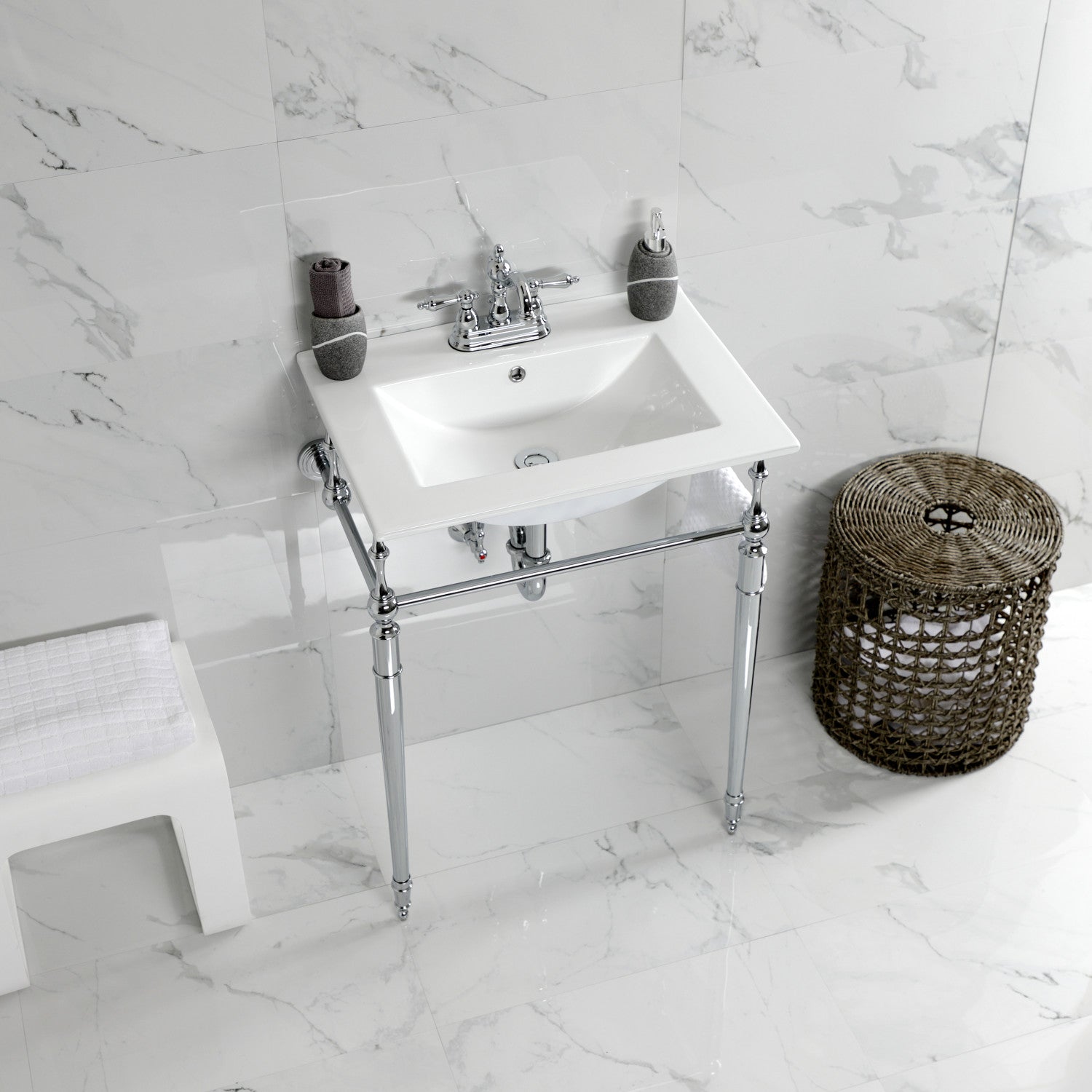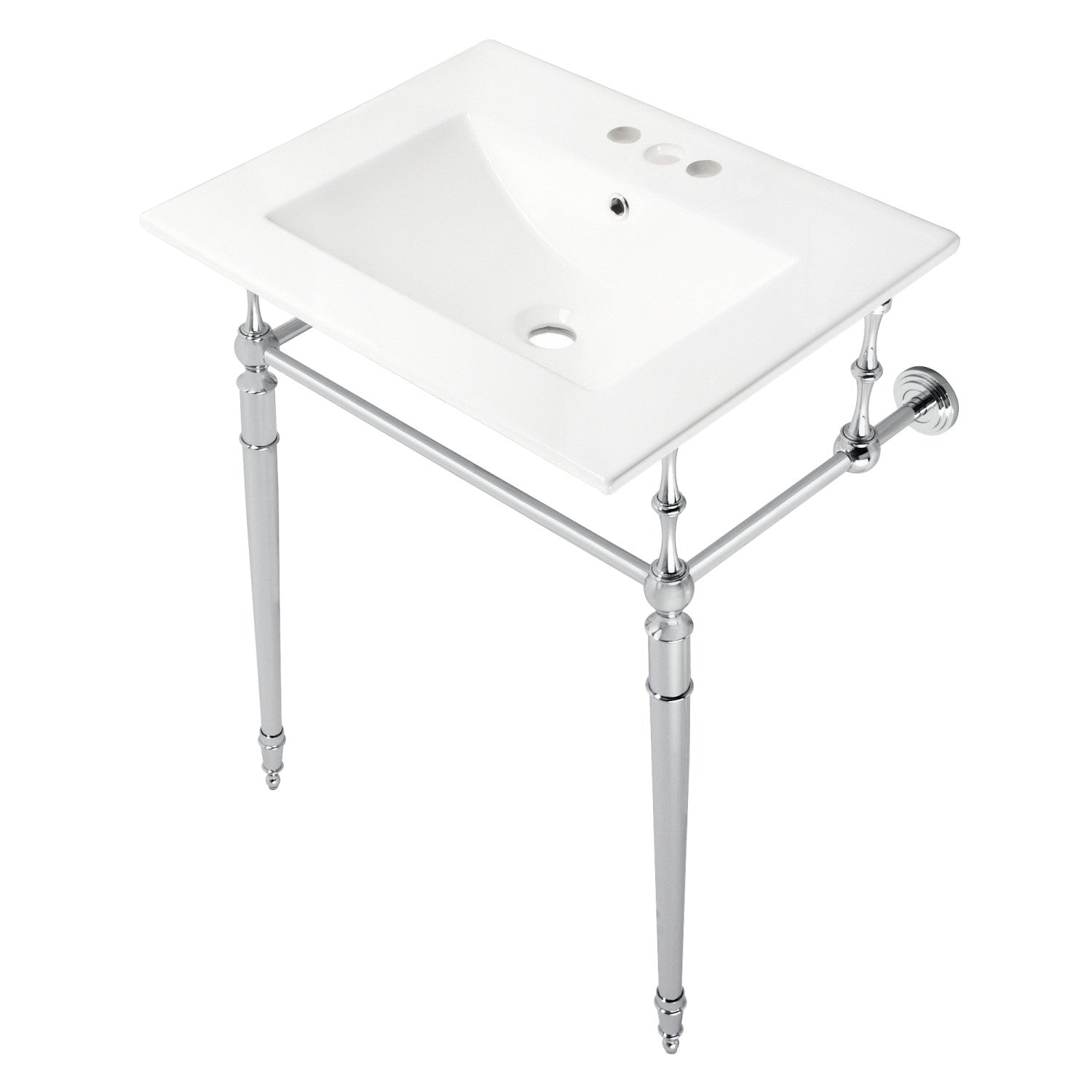 Edwardian KVPB24187W4CP 24-Inch Console Sink with Brass Legs (4-Inch, 3 Hole), White/Polished Chrome
