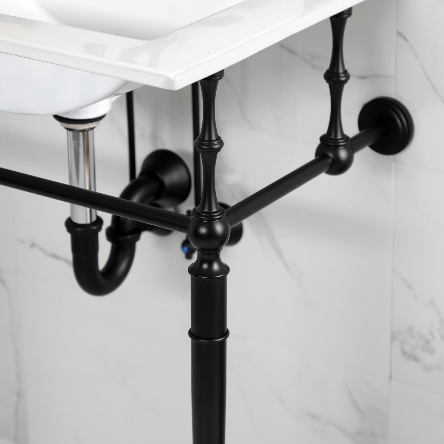 Edwardian KVPB24187W4MB 24-Inch Console Sink with Brass Legs (4-Inch, 3 Hole), White/Matte Black