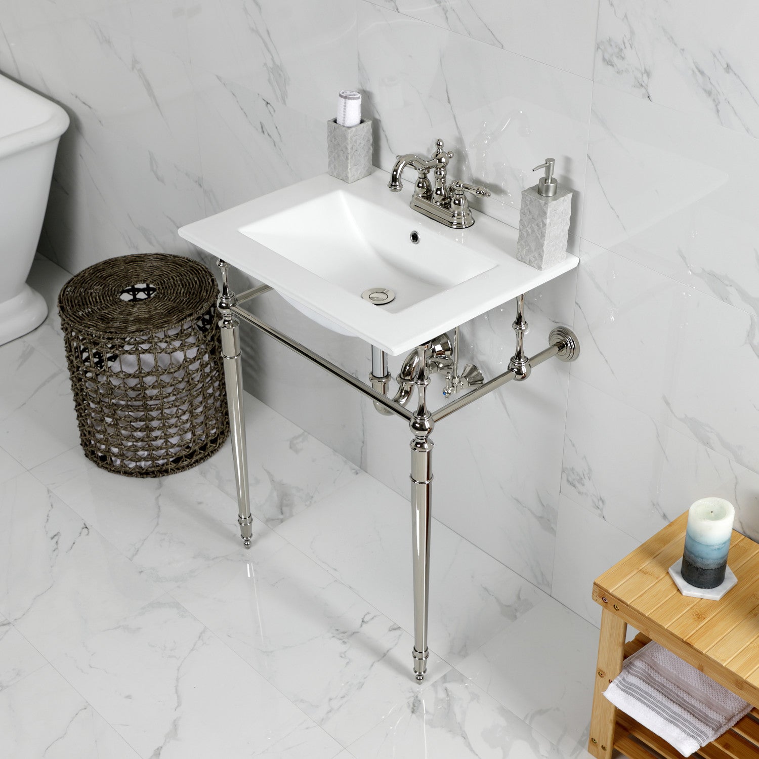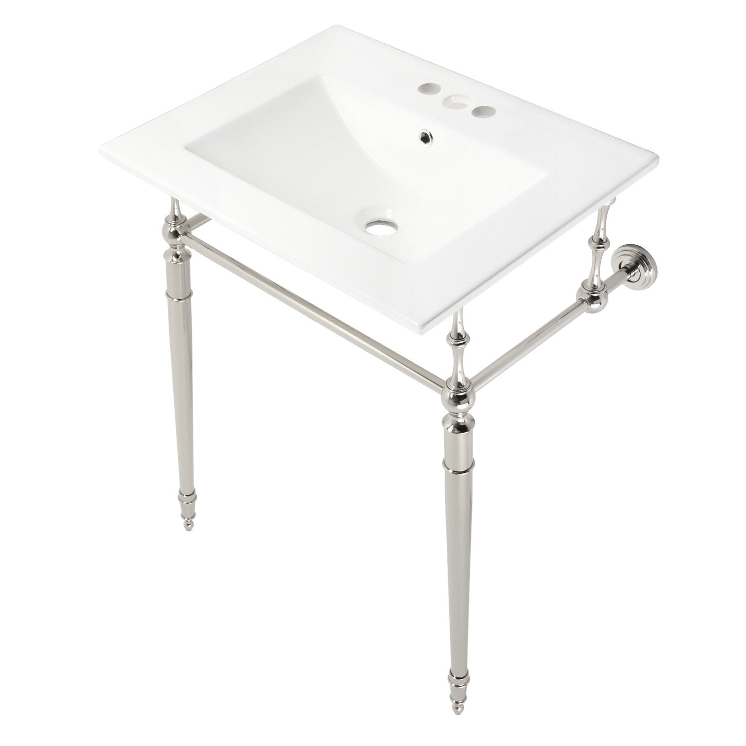 Edwardian KVPB24187W4PN 24-Inch Console Sink with Brass Legs (4-Inch, 3 Hole), White/Polished Nickel