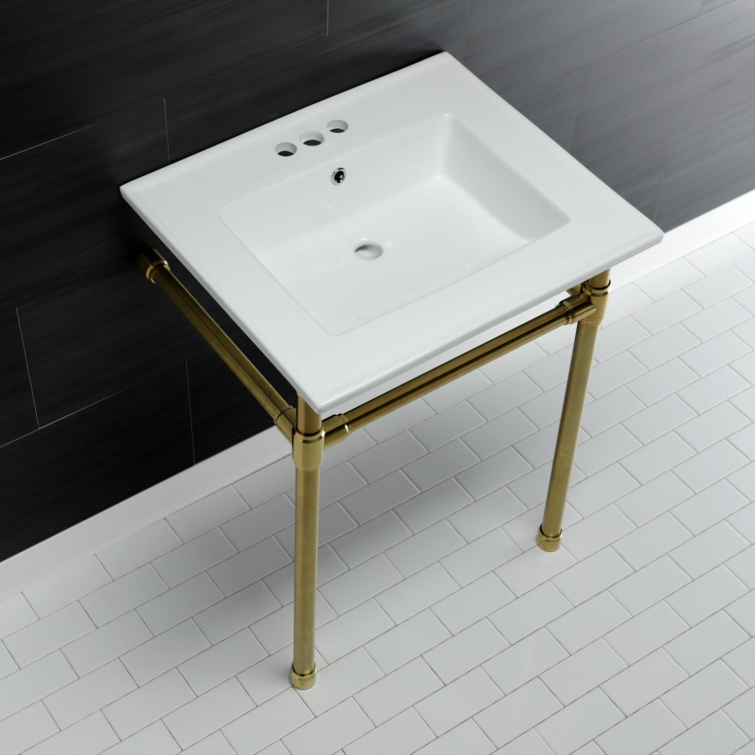 Dreyfuss KVPB25227W47 Console Sink, White/Brushed Brass