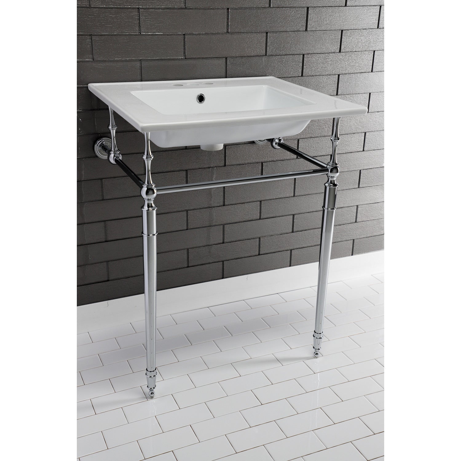 Edwardian KVPB25227W4CP Console Sink, White/Polished Chrome