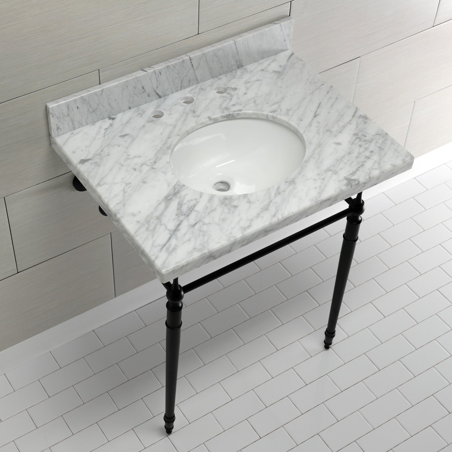 Edwardian KVPB3022M80 Console Sink, Marble White/Matte Black