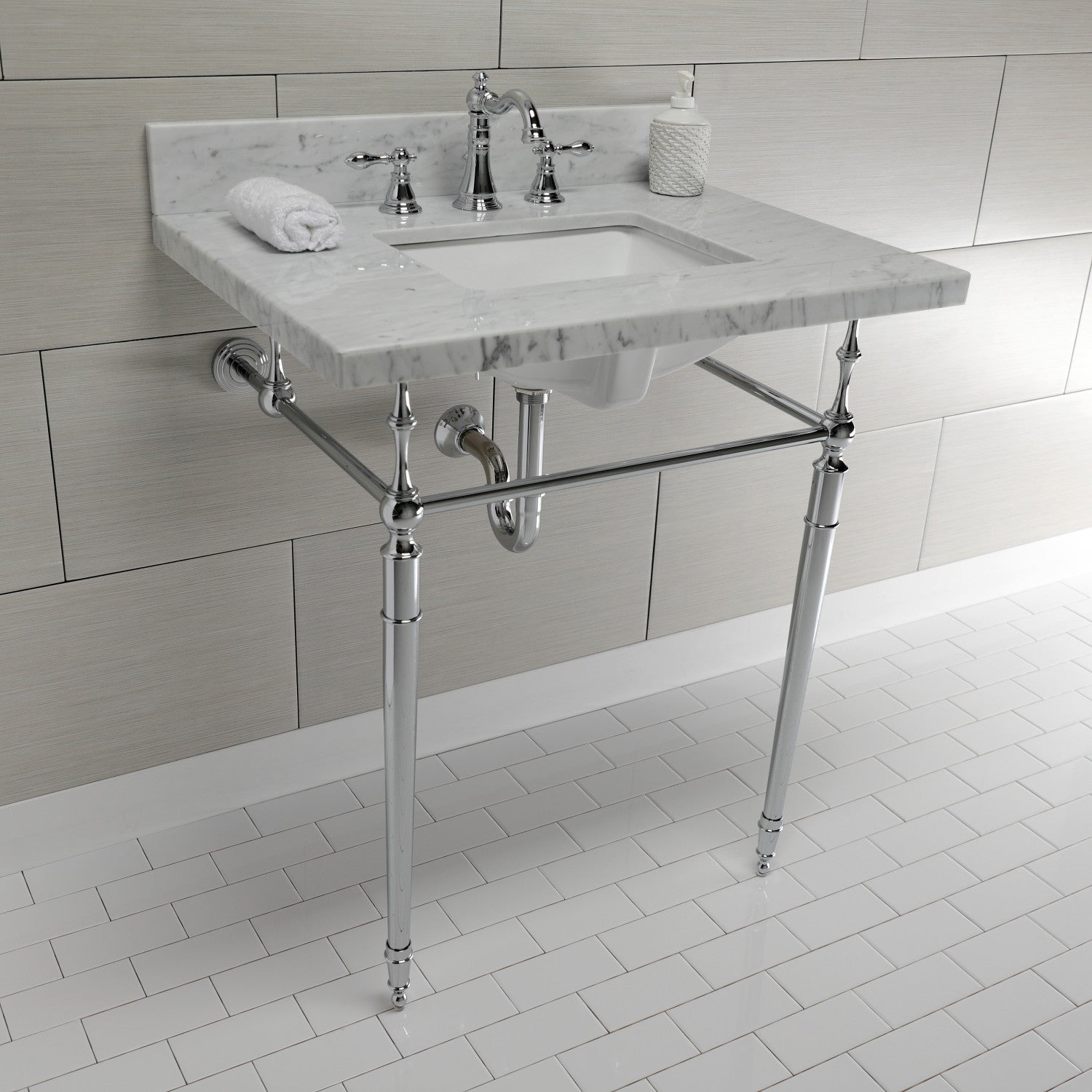 Edwardian KVPB3022M8SQ1 Console Sink, Marble White/Polished Chrome