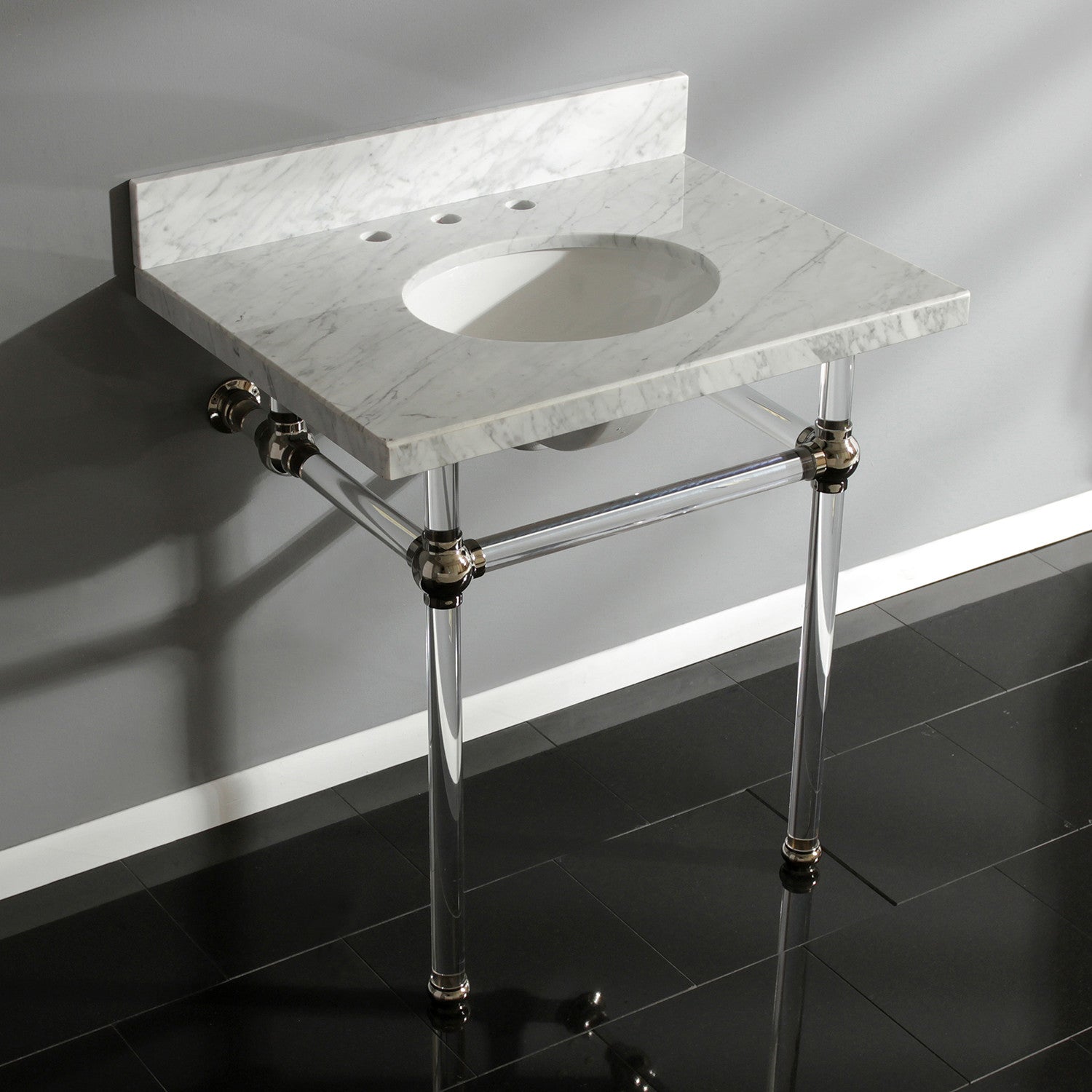 Fauceture KVPB3030MA6 30-Inch Marble Console Sink with Acrylic Feet, Carrara Marble/Polished Nickel