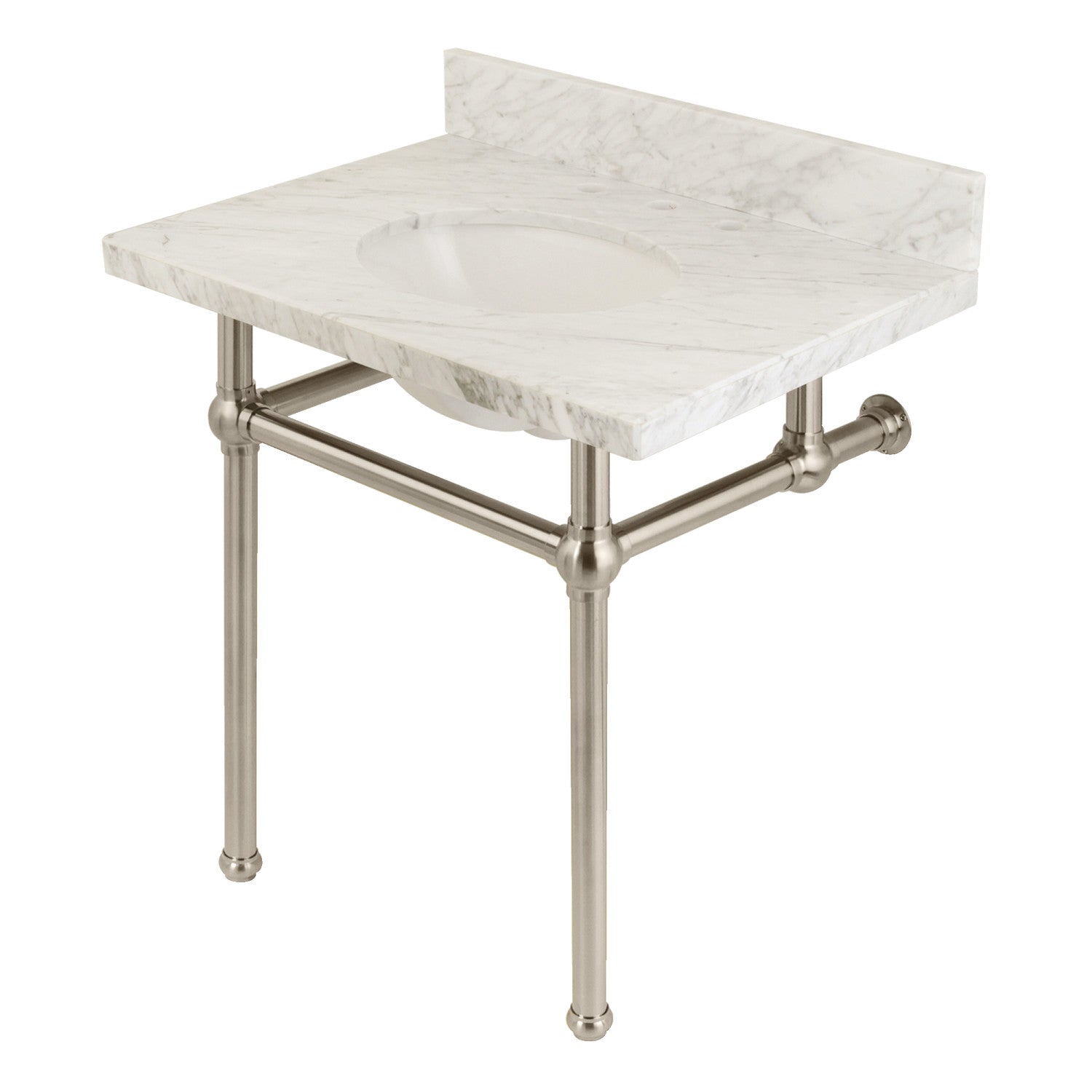 Fauceture KVPB3030MB8 30-Inch Marble Console Sink with Brass Feet, Carrara Marble/Brushed Nickel