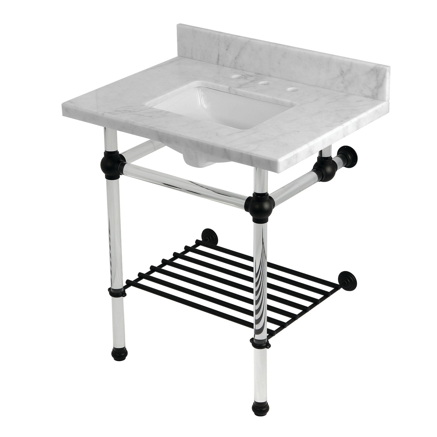 Templeton KVPB30MASQB0 30-Inch Console Sink with Acrylic Legs (8-Inch, 3 Hole), Carrara Marble/Matte Black