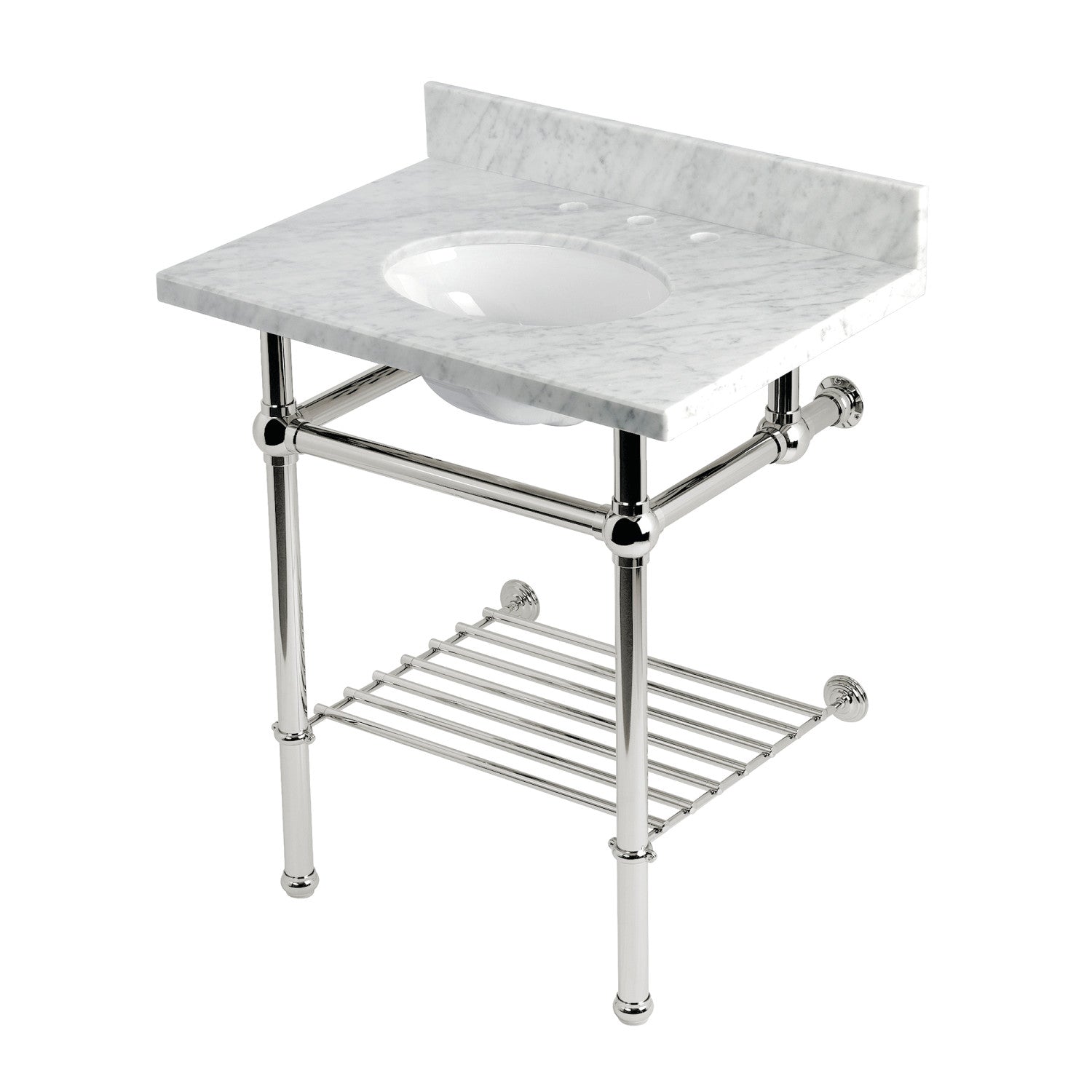 Templeton KVPB30MBB6 30-Inch Console Sink with Brass Legs (8-Inch, 3 Hole), Carrara Marble/Polished Nickel