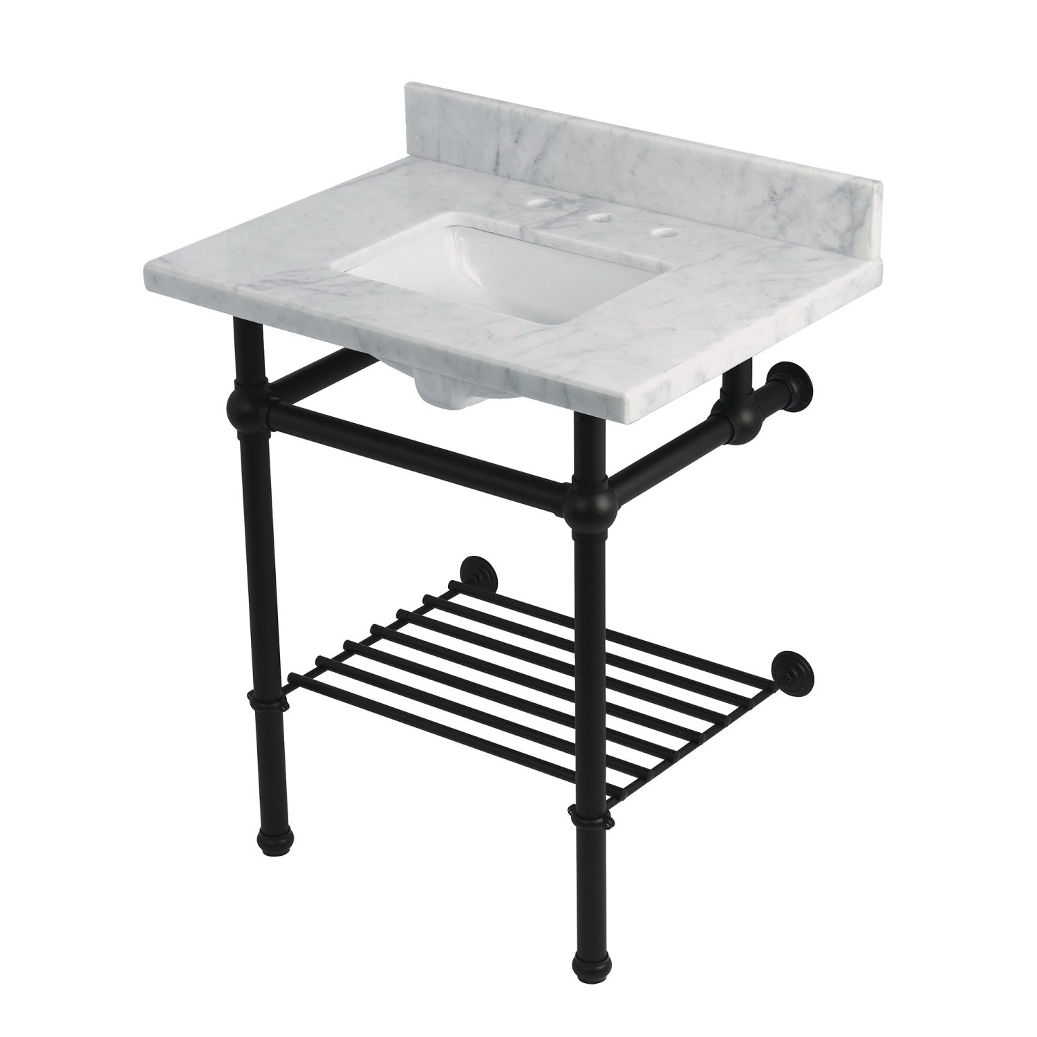 Templeton KVPB30MBSQB0 30-Inch Console Sink with Brass Legs (8-Inch, 3 Hole), Carrara Marble/Matte Black