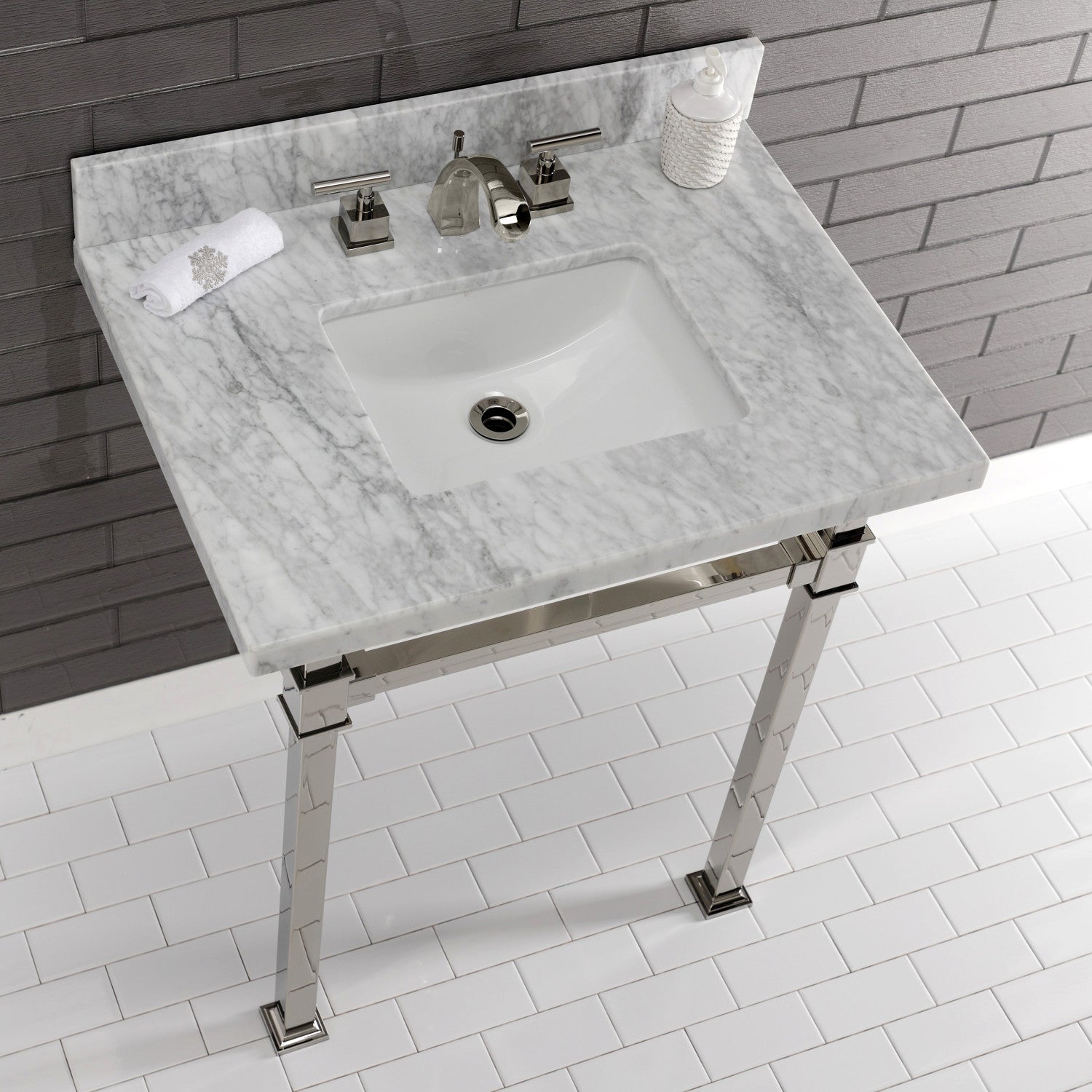 Fauceture KVPB30MSQ6 30-Inch Carrara Marble Console Sink, Marble White/Polished Nickel