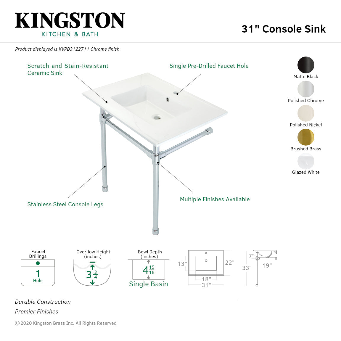 Dreyfuss KVPB3122716 Console Sink, White/Polished Nickel