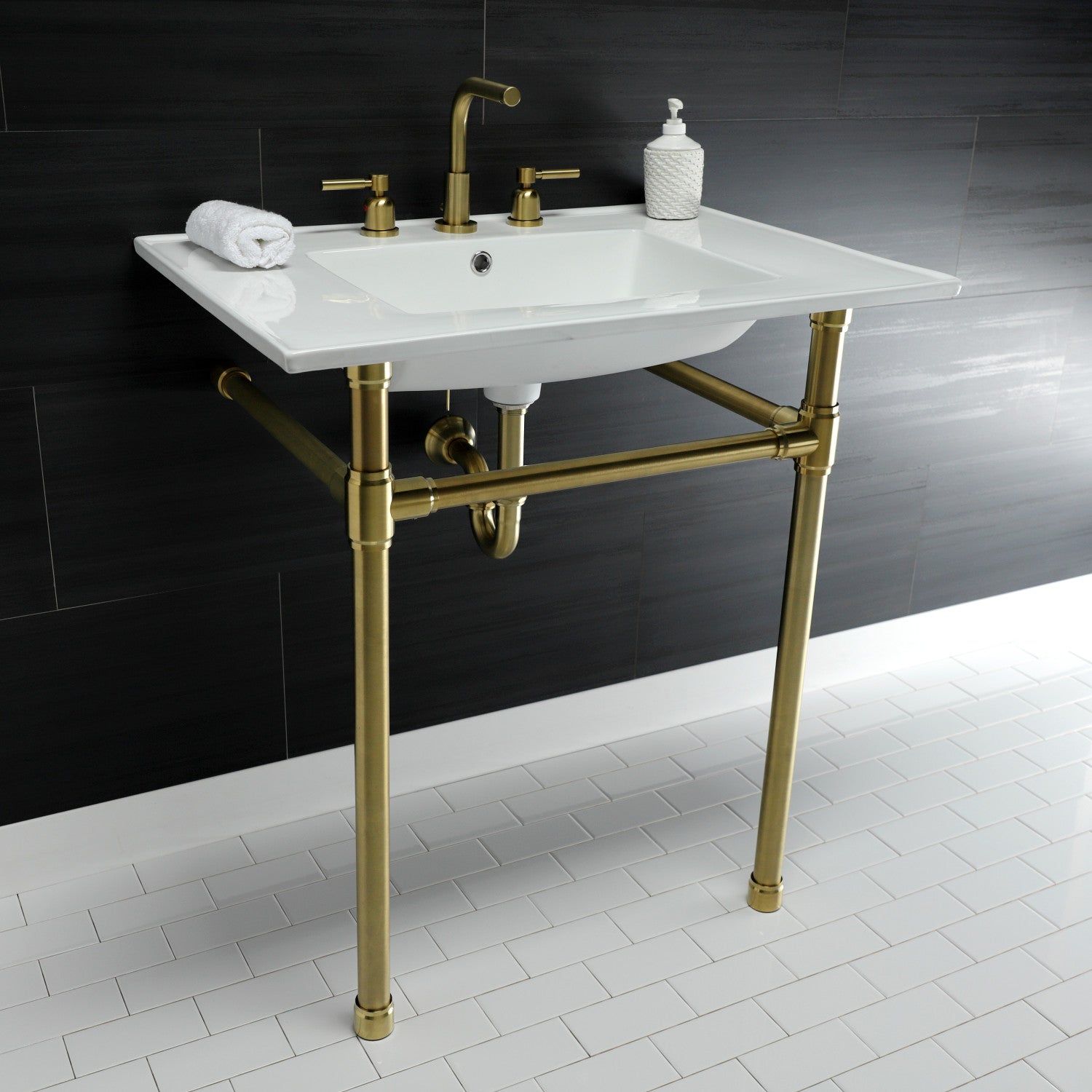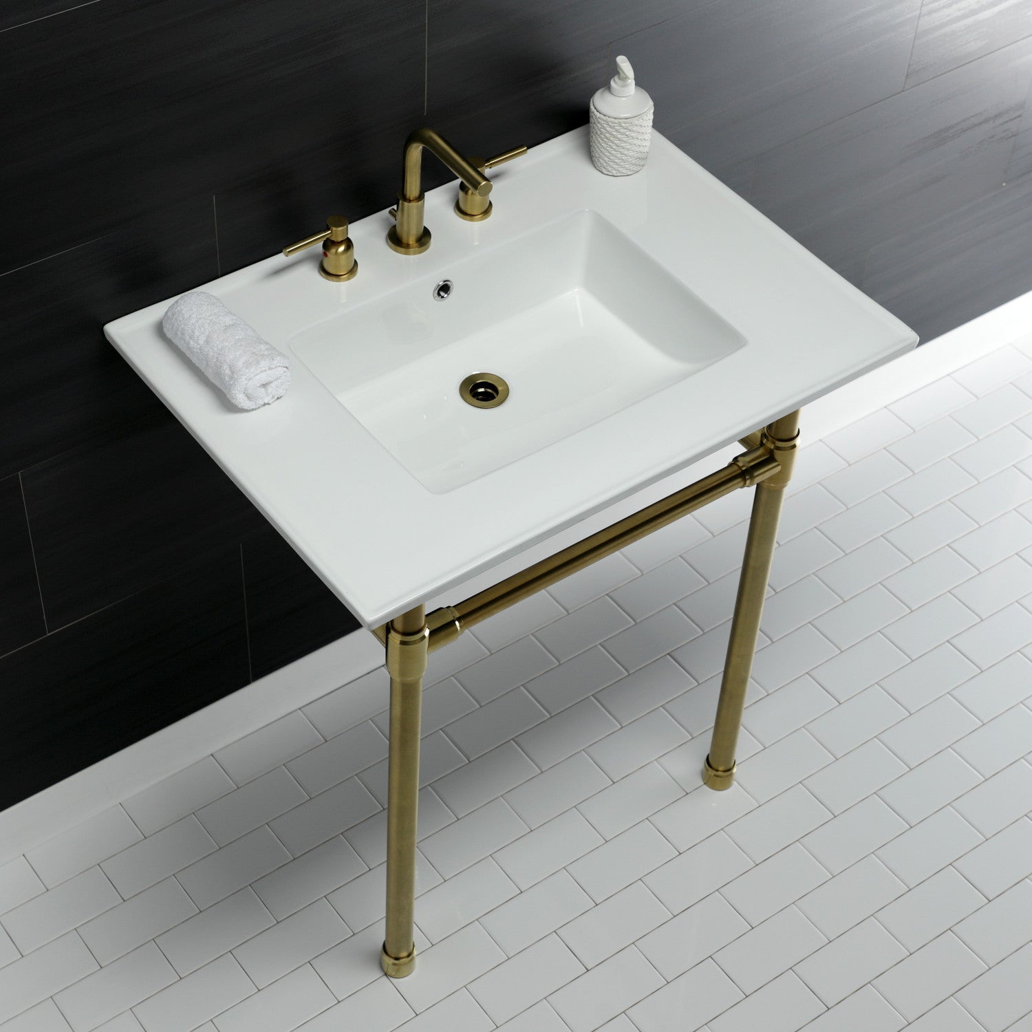 Dreyfuss KVPB31227W87 Console Sink, White/Brushed Brass