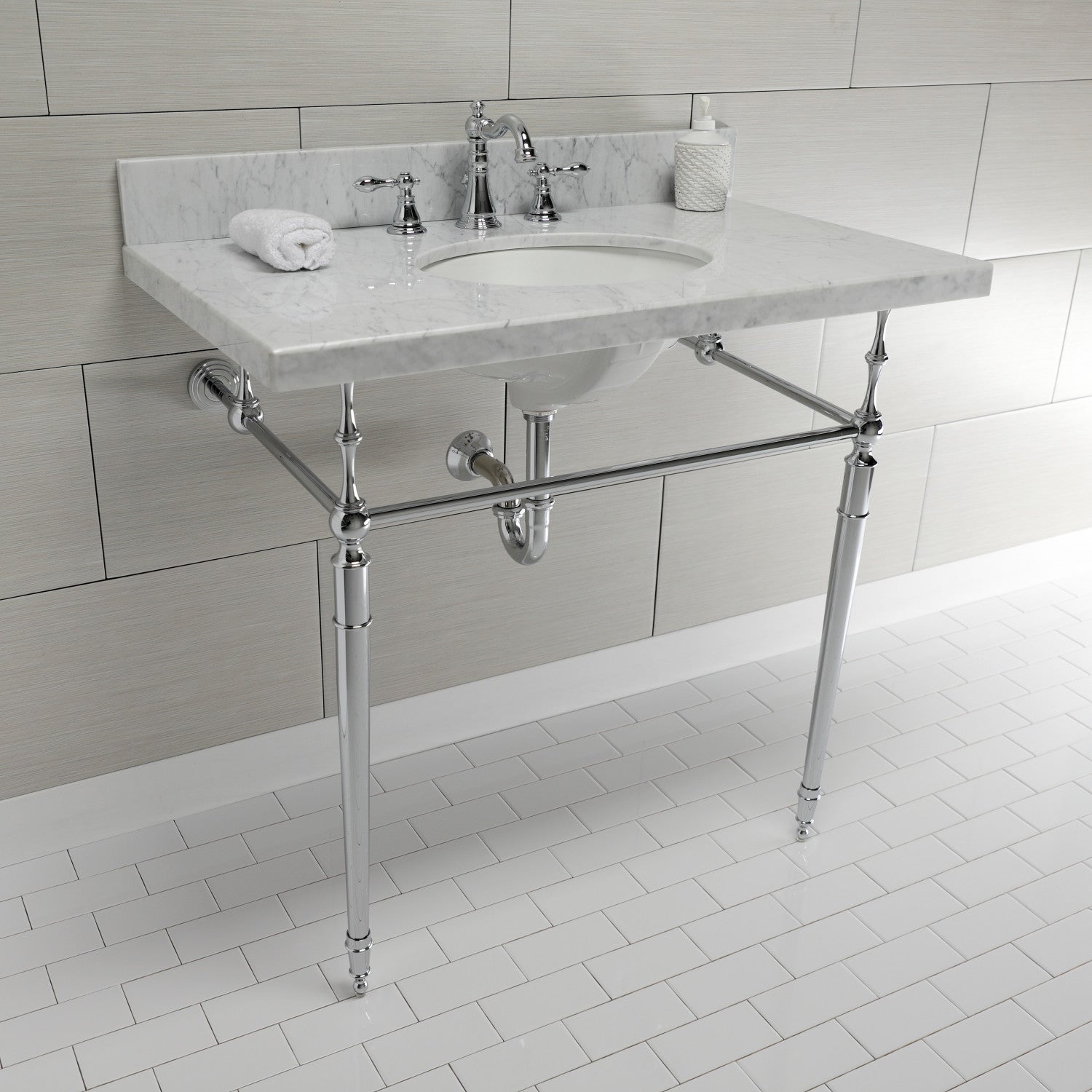 Edwardian KVPB3622M81 Console Sink, Marble White/Polished Chrome