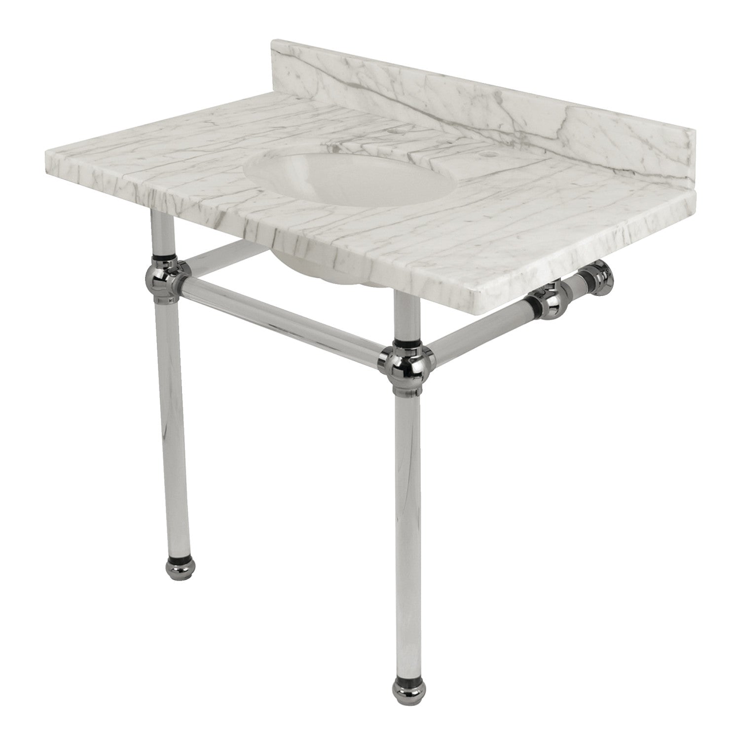 Fauceture KVPB3630MA1 36-Inch Marble Console Sink with Acrylic Feet, Carrara Marble/Polished Chrome