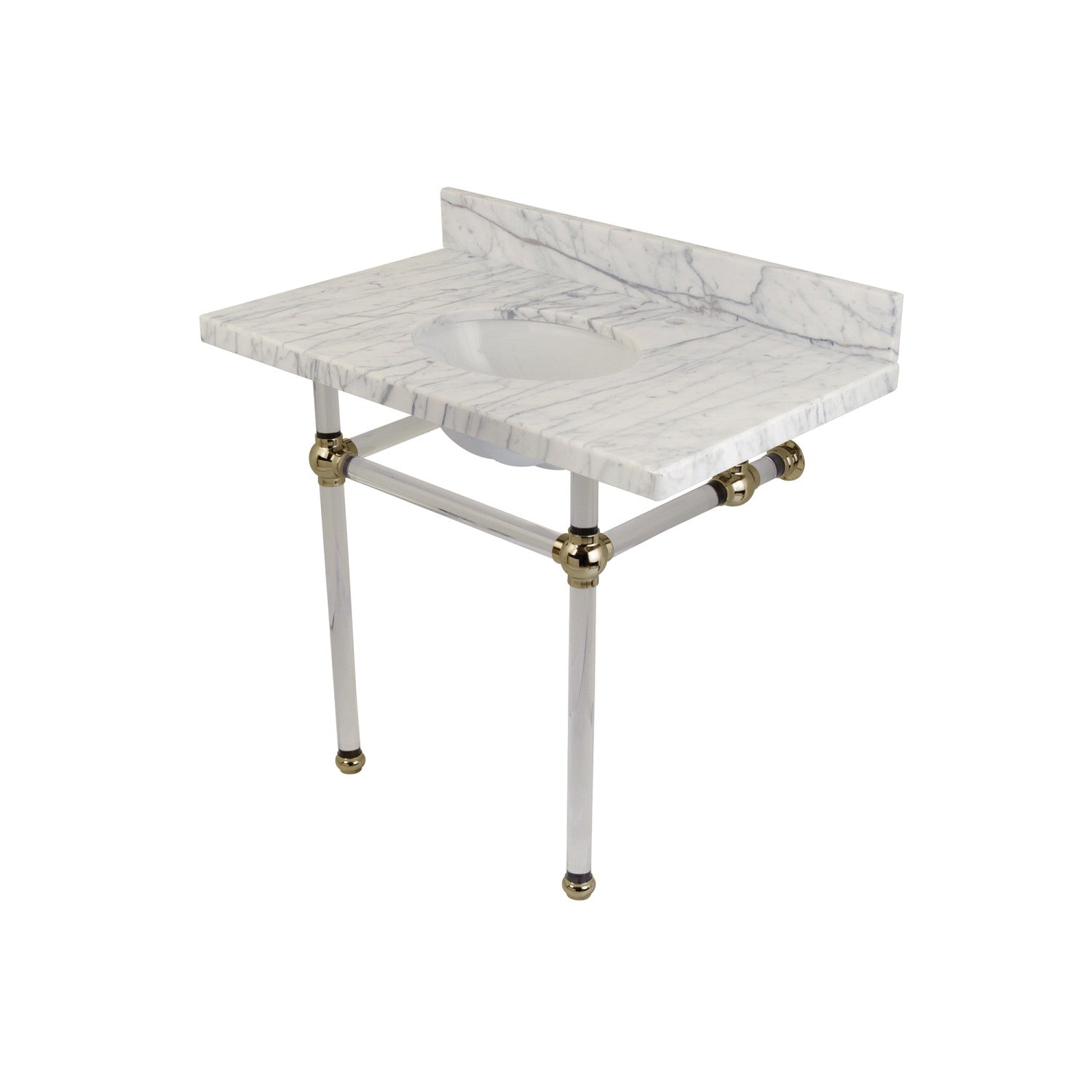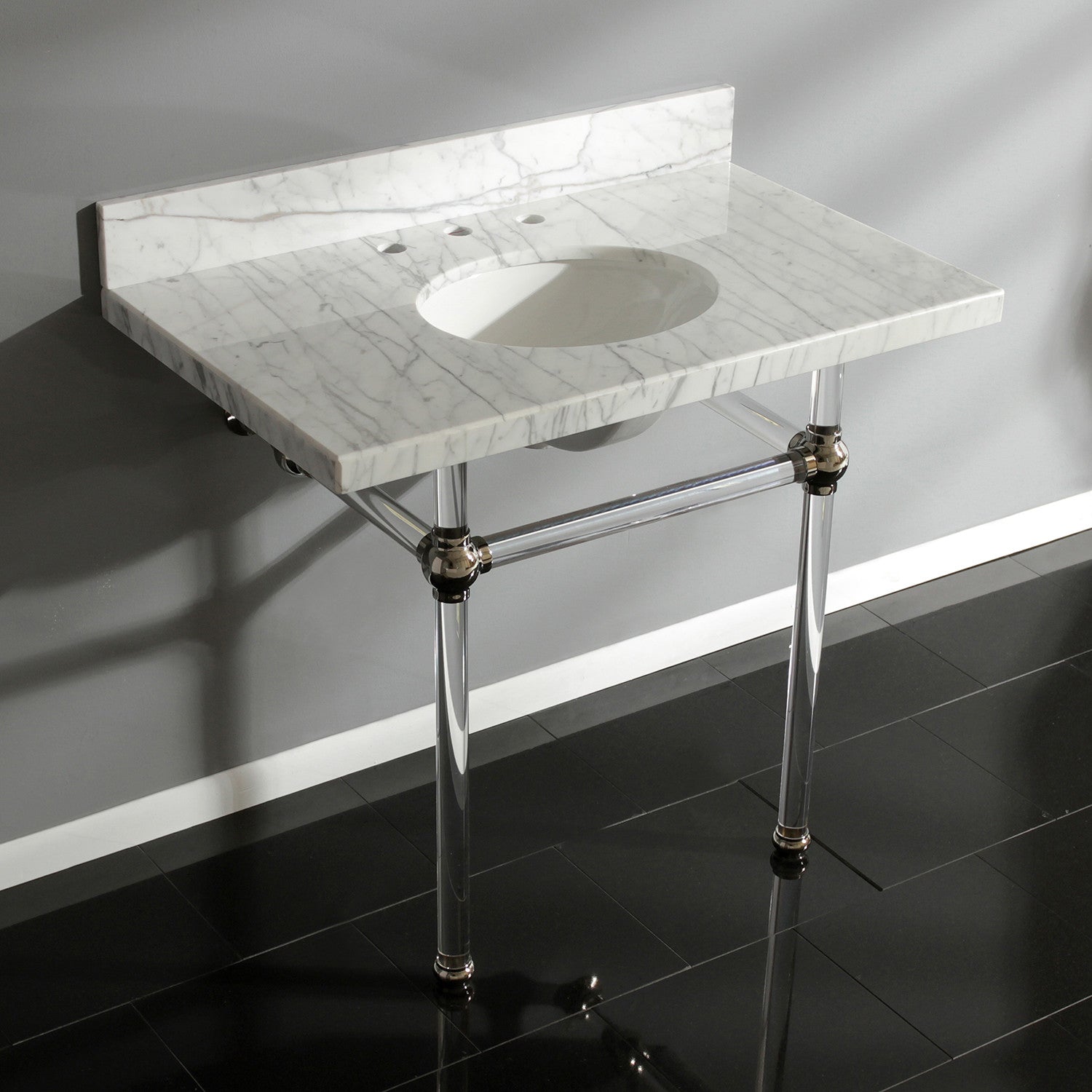 Fauceture KVPB3630MA6 36-Inch Marble Console Sink with Acrylic Feet, Carrara Marble/Polished Nickel