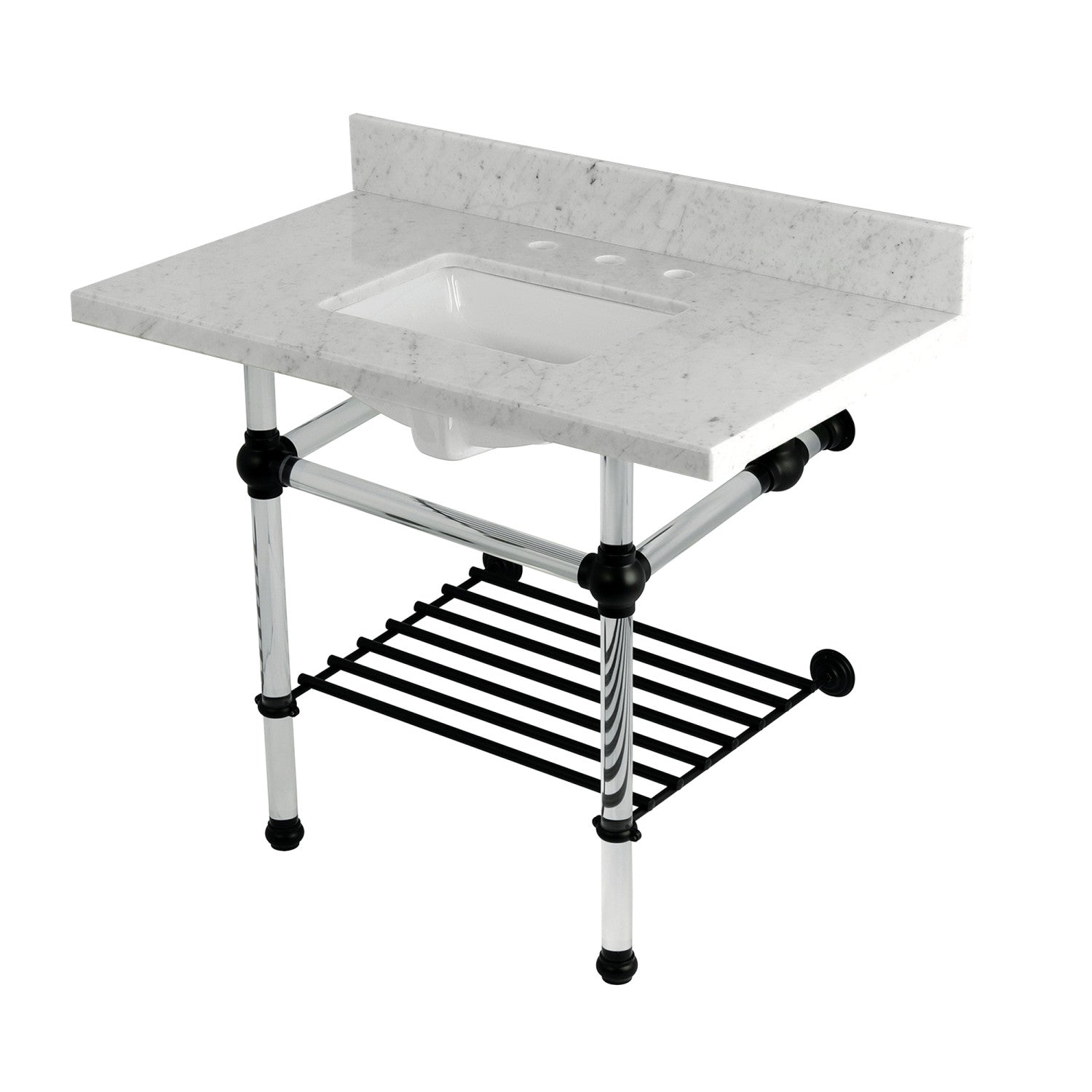 Templeton KVPB3630MASQB0 36-Inch Console Sink with Acrylic Legs (8-Inch, 3 Hole), Carrara Marble/Matte Black