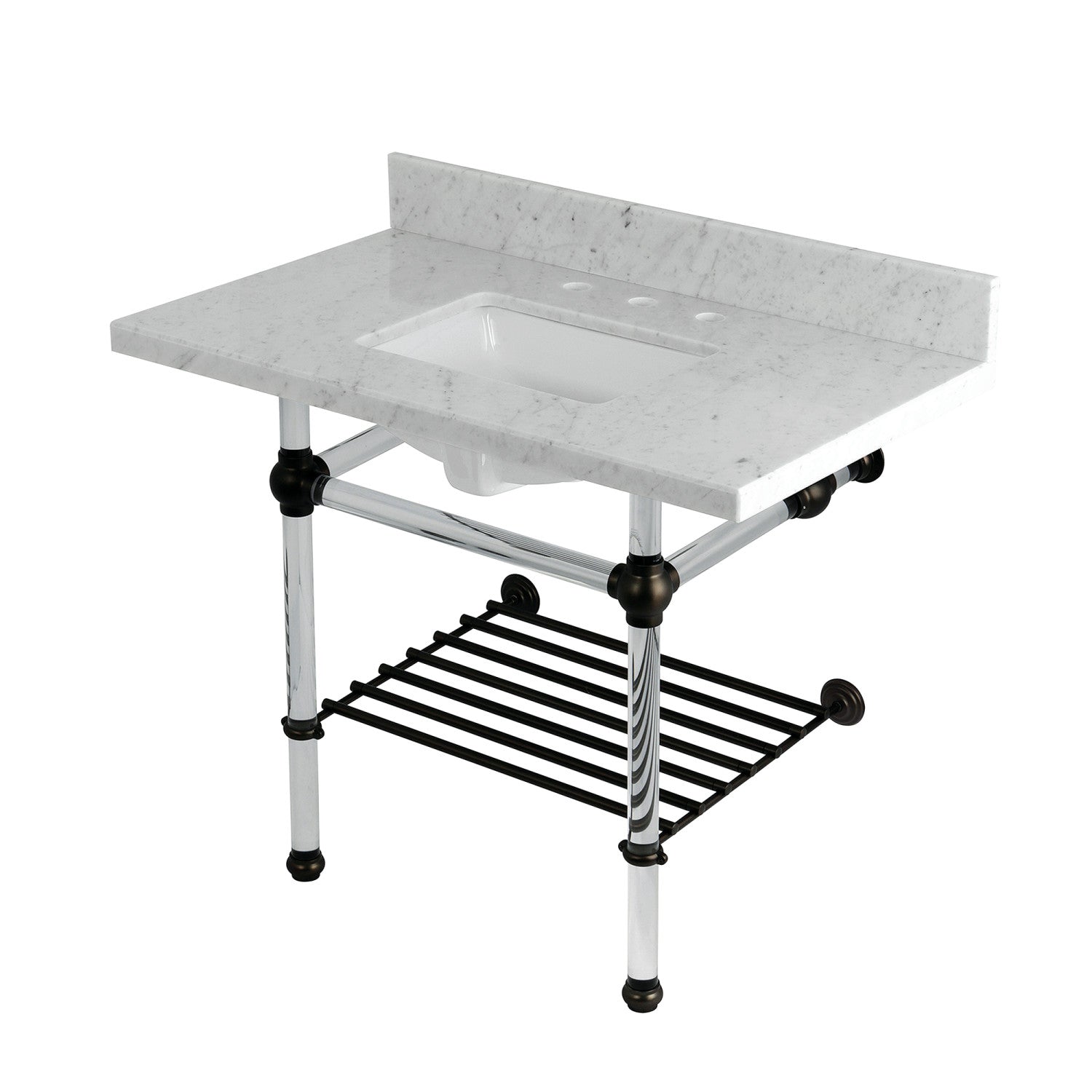 Templeton KVPB3630MASQB5 36-Inch Console Sink with Acrylic Legs (8-Inch, 3 Hole), Carrara Marble/Oil Rubbed Bronze