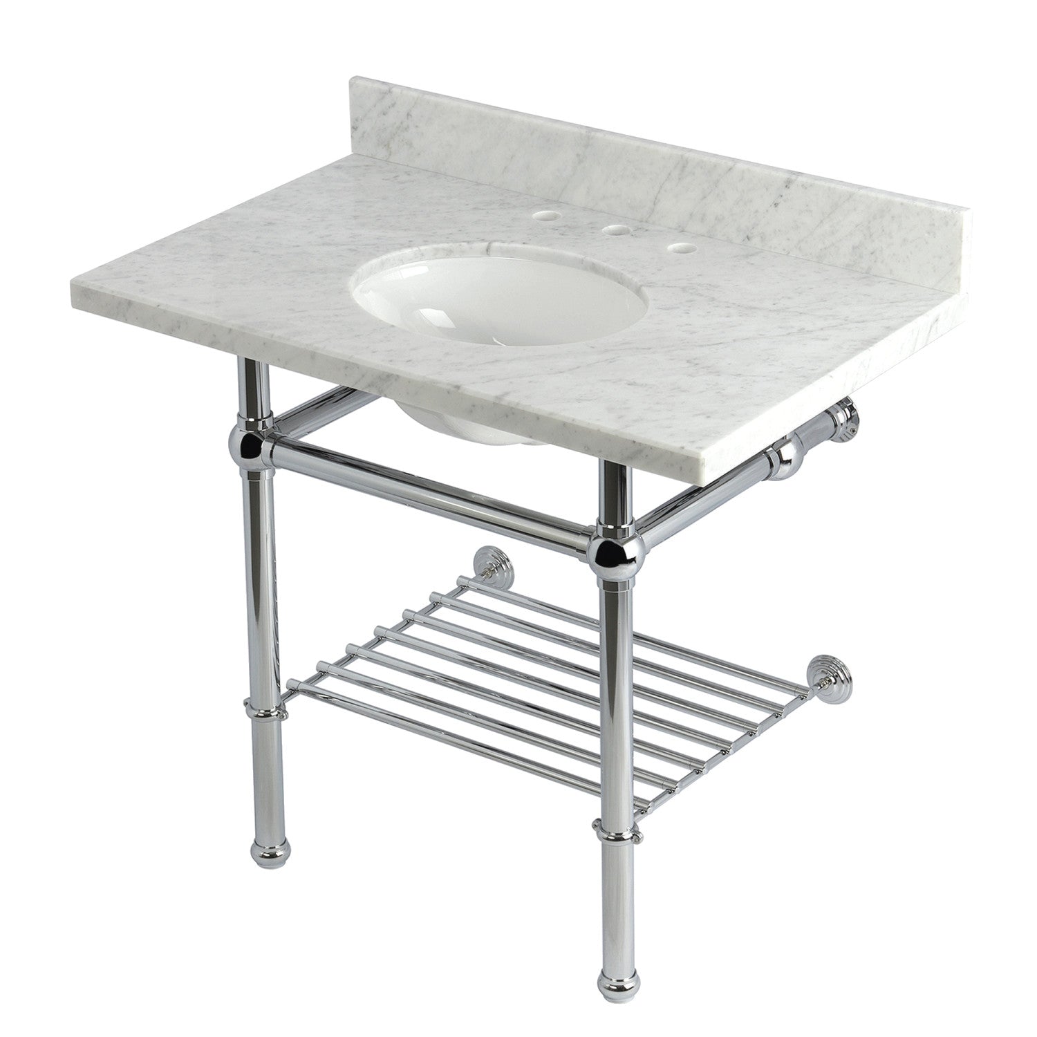 Templeton KVPB3630MBB1 36-Inch Console Sink with Brass Legs (8-Inch, 3 Hole), Carrara Marble/Polished Chrome