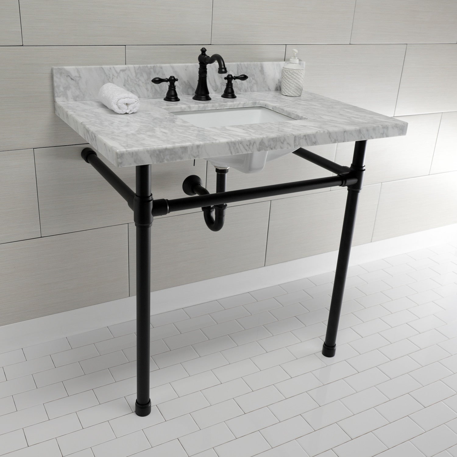 Dreyfuss KVPB36M8SQ0ST Console Sink, Marble White/Matte Black