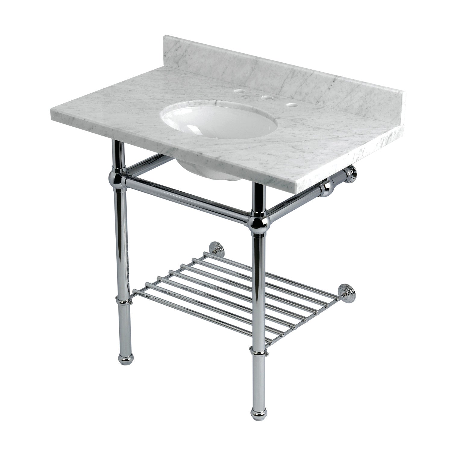 Templeton KVPB36MBB1 36-Inch Console Sink with Brass Legs (8-Inch, 3 Hole), Carrara Marble/Polished Chrome