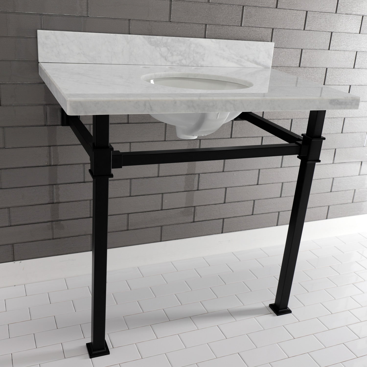Fauceture KVPB36MOQ0 36-Inch Carrara Marble Console Sink, Marble White/Matte Black