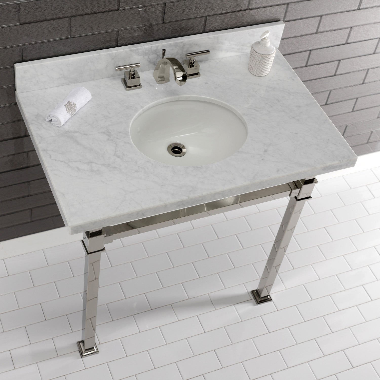 Fauceture KVPB36MOQ6 36-Inch Carrara Marble Console Sink, Marble White/Polished Nickel